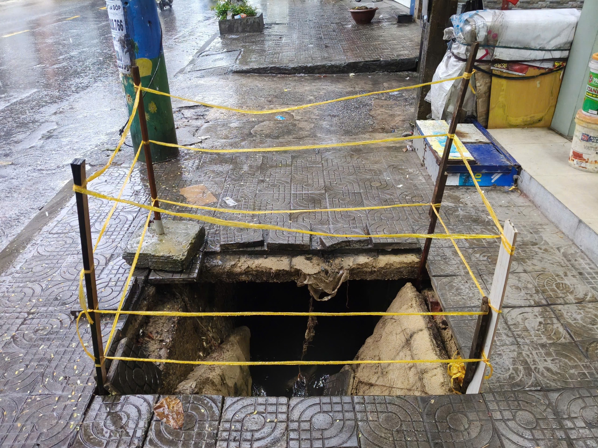 Tình huống xảy ra chỉ trong vài giây, rất may không gây thương tích cho người dân. Sau khi sự cố xảy ra, chủ cửa hàng số 448 Trưng Nữ Vương đã dùng dây căng quanh khu vực để cảnh báo người dân tránh đi lại gần vị trí hố.