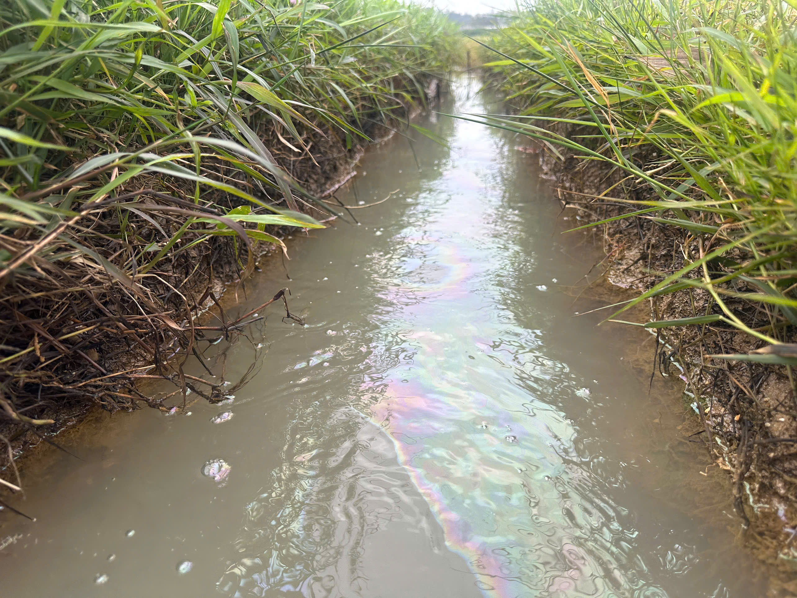 Dầu tràn ra mương nước trên đồng ruộng thôn Thuận Phước, xã Vạn Tường