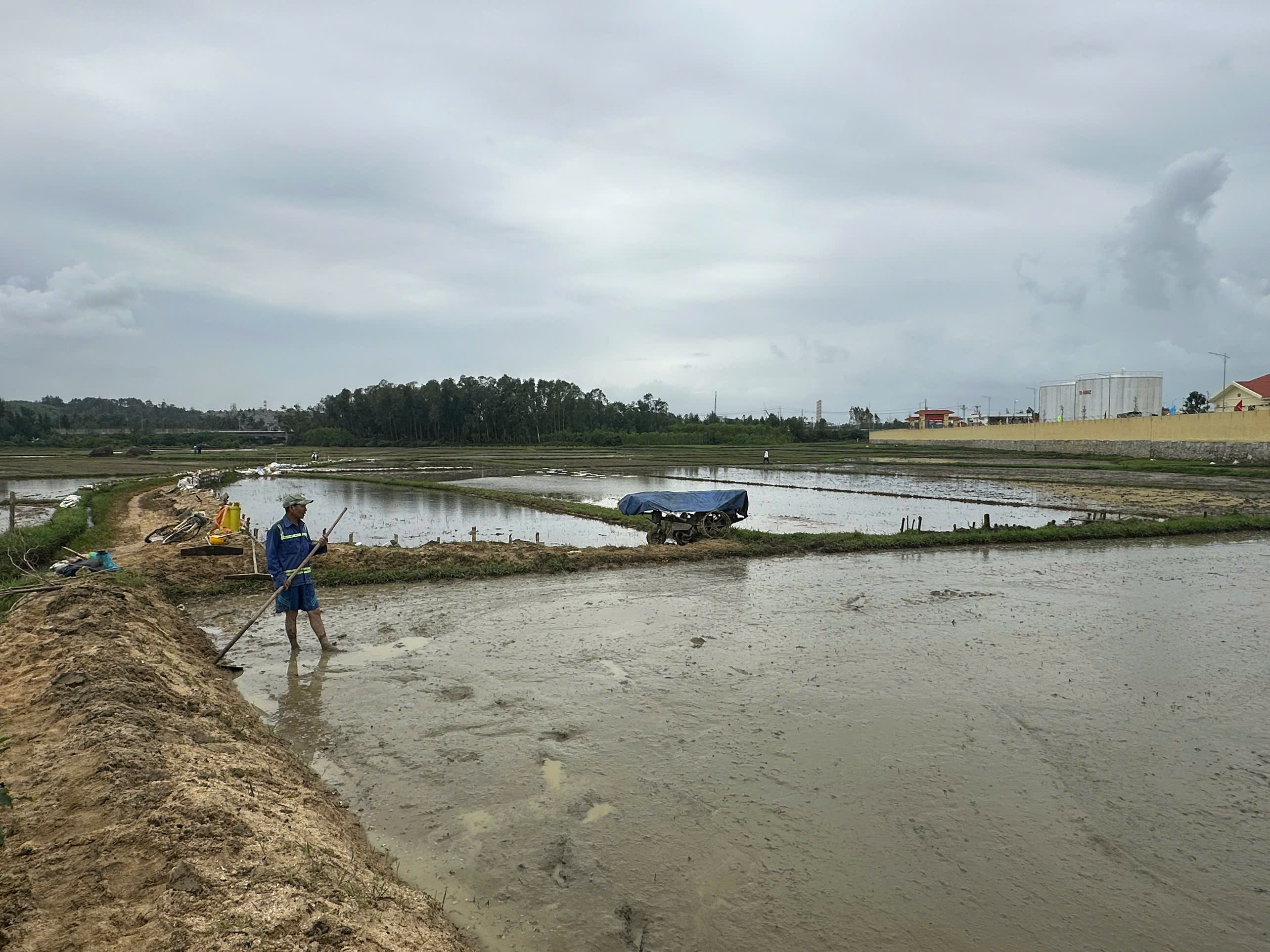Đồng ruộng của người dân thôn Thuận Phước đang canh tác bị ảnh hưởng do sự cố tràn dầu