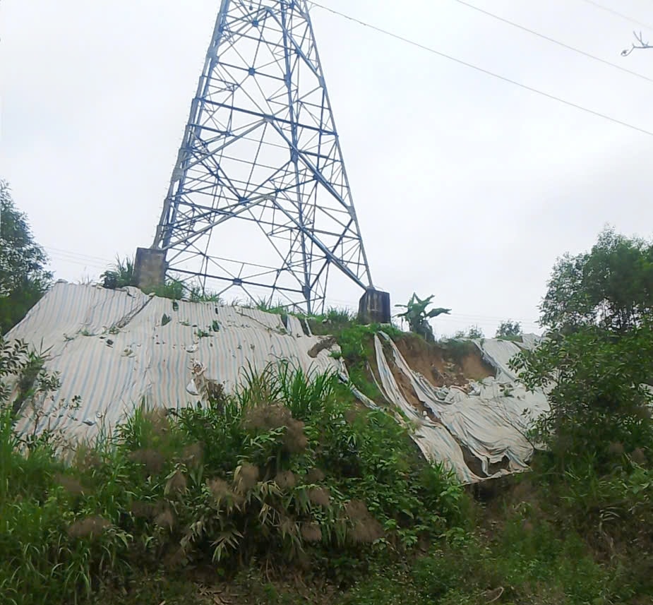 Tại vị trí sạt lở, trụ điện 220kV do Công ty Truyền tải điện 2 quản lý, vận hành có nguy cơ bị ngã đổ gây mất an toàn giao thông tuyến quốc lộ 14D.