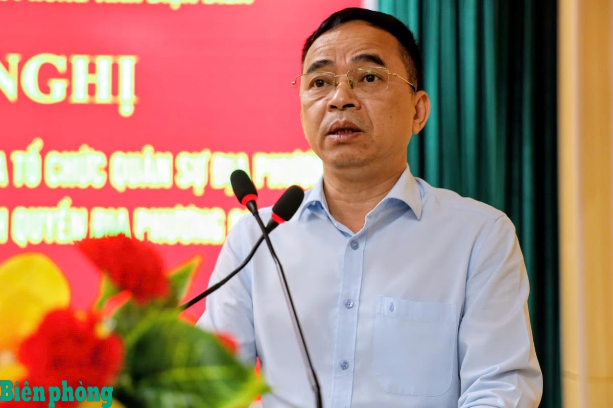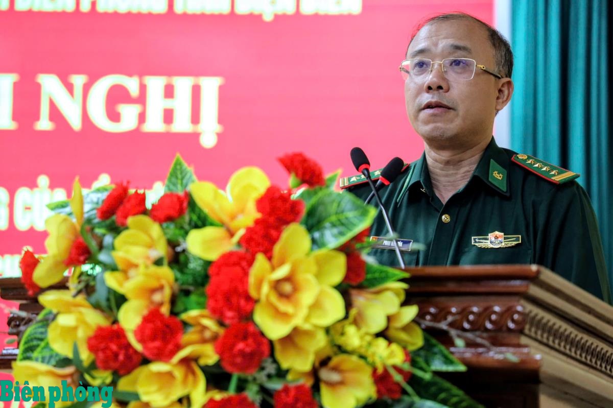 Đại tá Phan Văn Hóa, Chỉ huy trưởng Ban Chỉ huy Bộ đội Biên phòng tỉnh Điện Biên phát biểu tại hội nghị. Ảnh: Anh Dũng