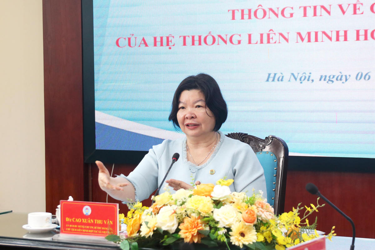 Theo bà Cao Xuân Thu Vân - Chủ tịch Liên minh Hợp tác xã Việt Nam, thời gian tới, hệ thống Liên minh HTX Việt Nam tiếp tục phát huy vai trò nòng cốt trong phát triển kinh tế tập thể, HTX; đẩy mạnh xây dựng, kiện toàn hệ thống Liên minh HTX Việt Nam vững mạnh, thực hiện hiệu quả chức năng đại diện, bảo vệ quyền và lợi ích hợp pháp của thành viên.