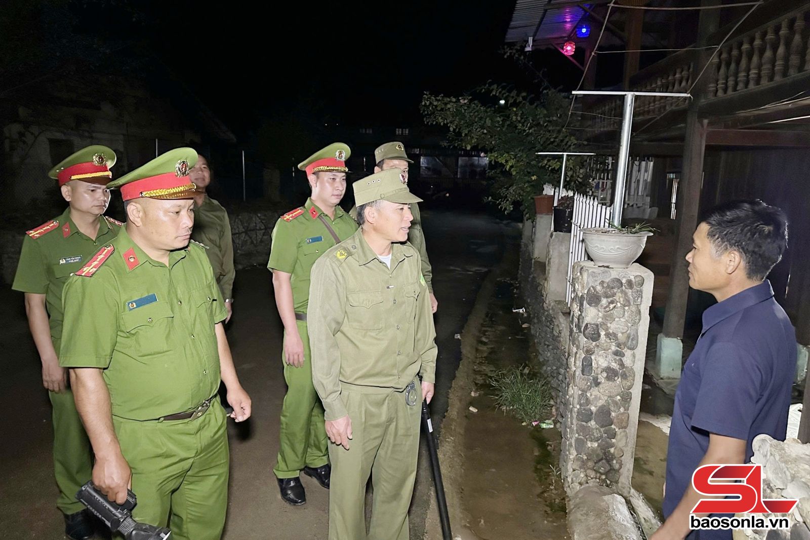 Công an xã Ngọc Chiến tuần tra, kiểm soát ANTT tại các khu dân cư.