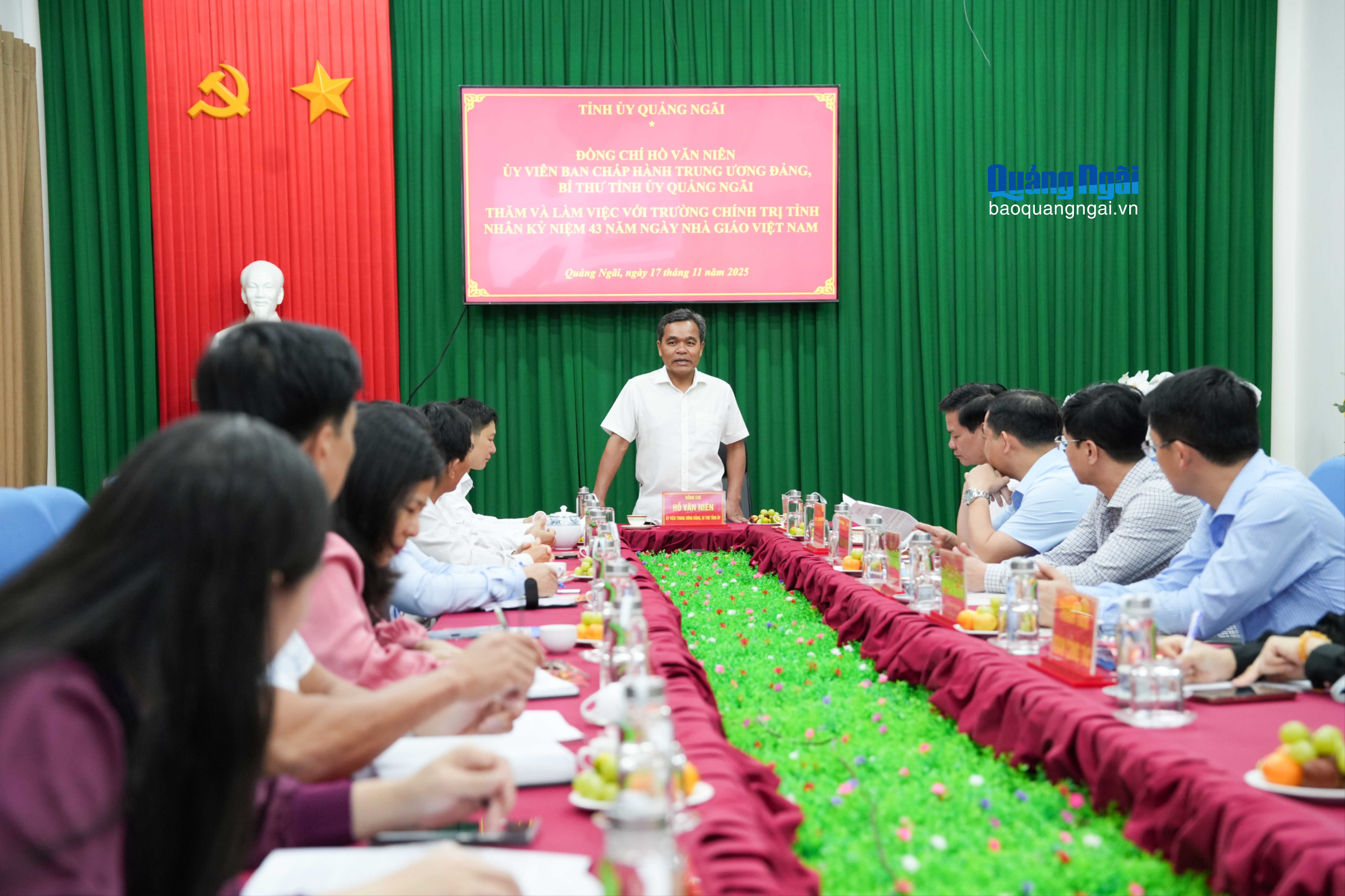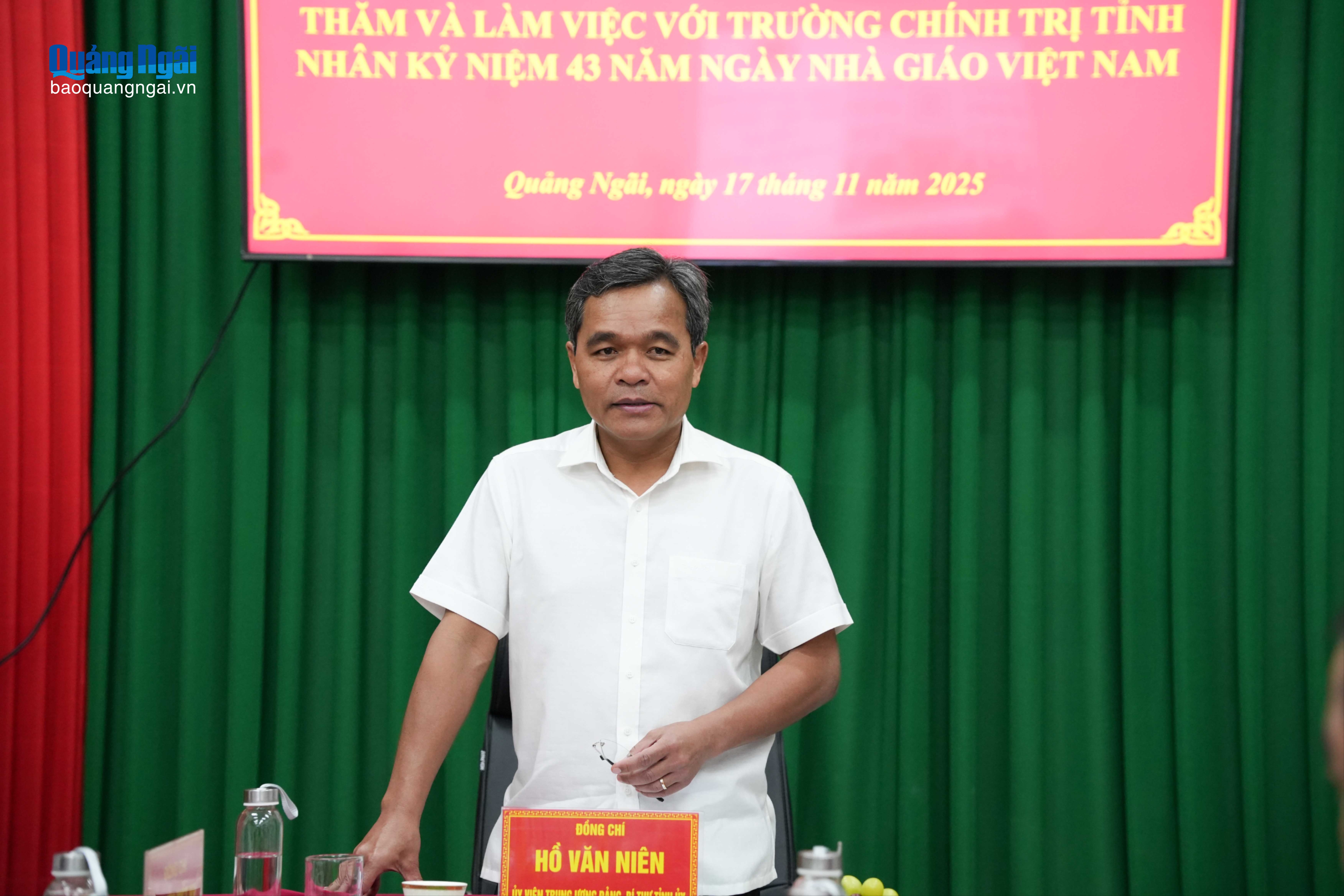 Chiều 17/11, Ủy viên Trung ương Đảng, Bí thư Tỉnh ủy Hồ Văn Niên đã đến thăm và làm việc với Trường Chính trị tỉnh, nhân kỷ niệm 43 năm ngày Nhà giáo Việt Nam (20/11/1982 - 20/11/2025).