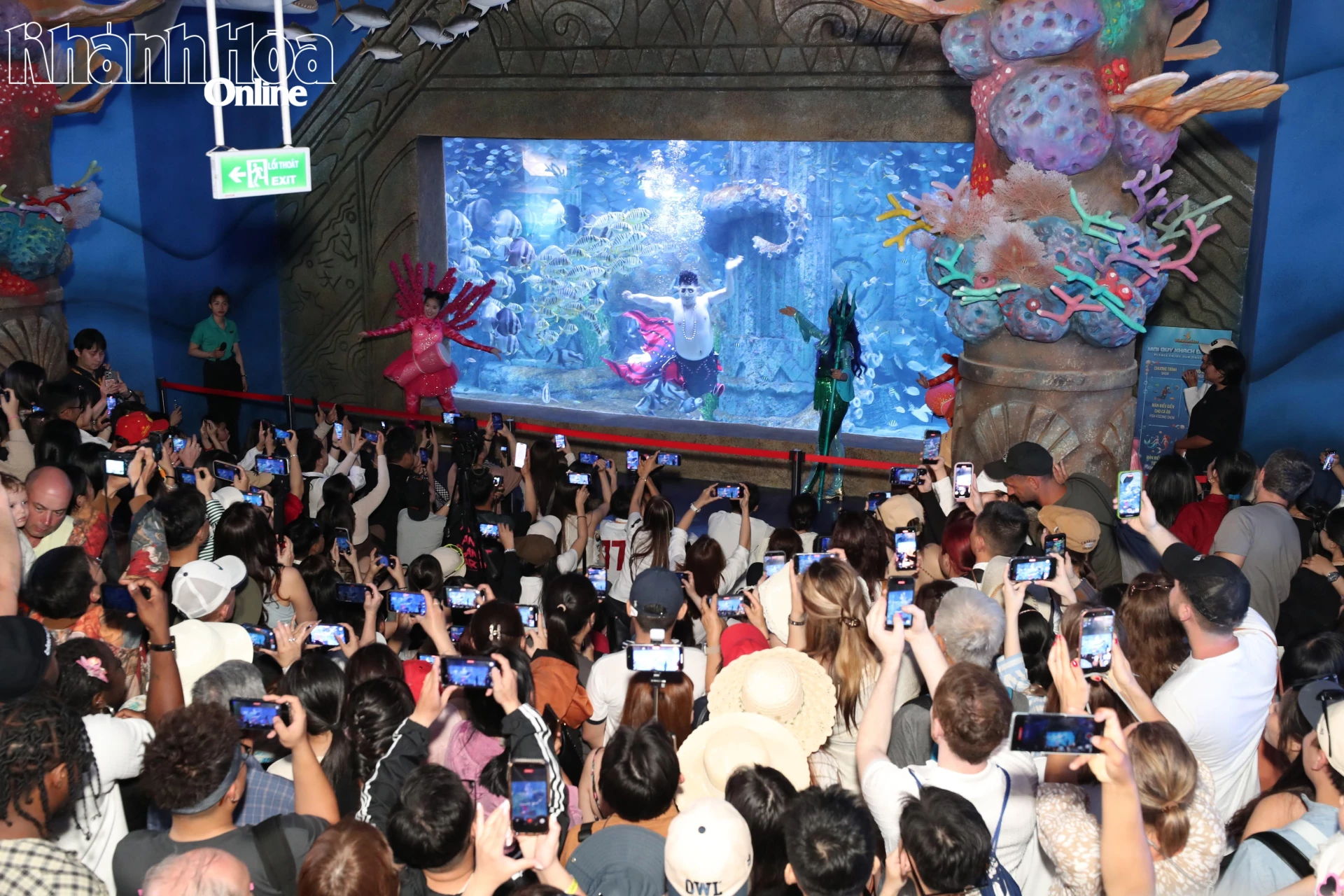 Khách du lịch xem show diễn ở thủy cung VinWonders Nha Trang.