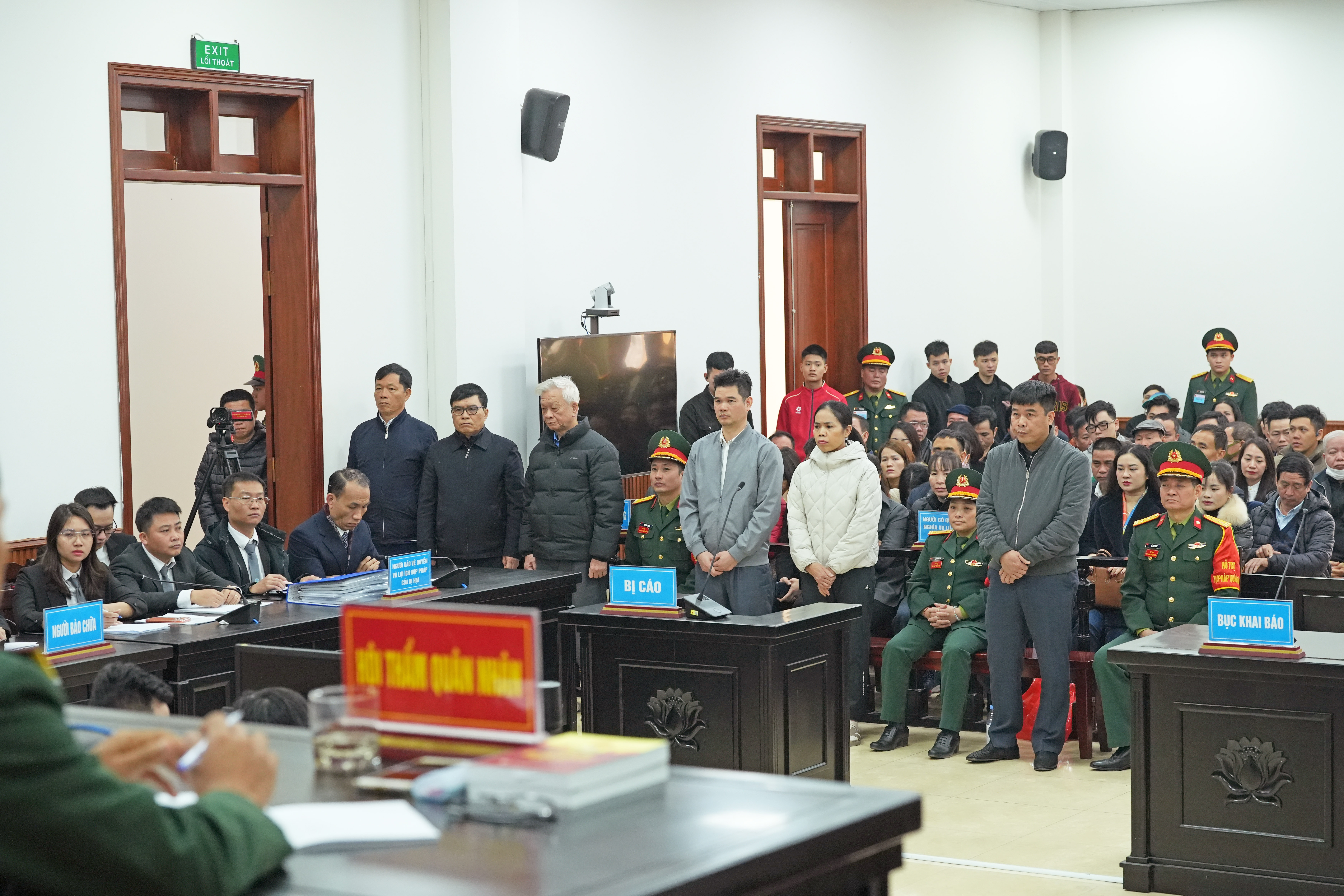 Các bị cáo nghe tuyên án tại phiên tòa sơ thẩm. Ảnh: TRỌNG PHÚ