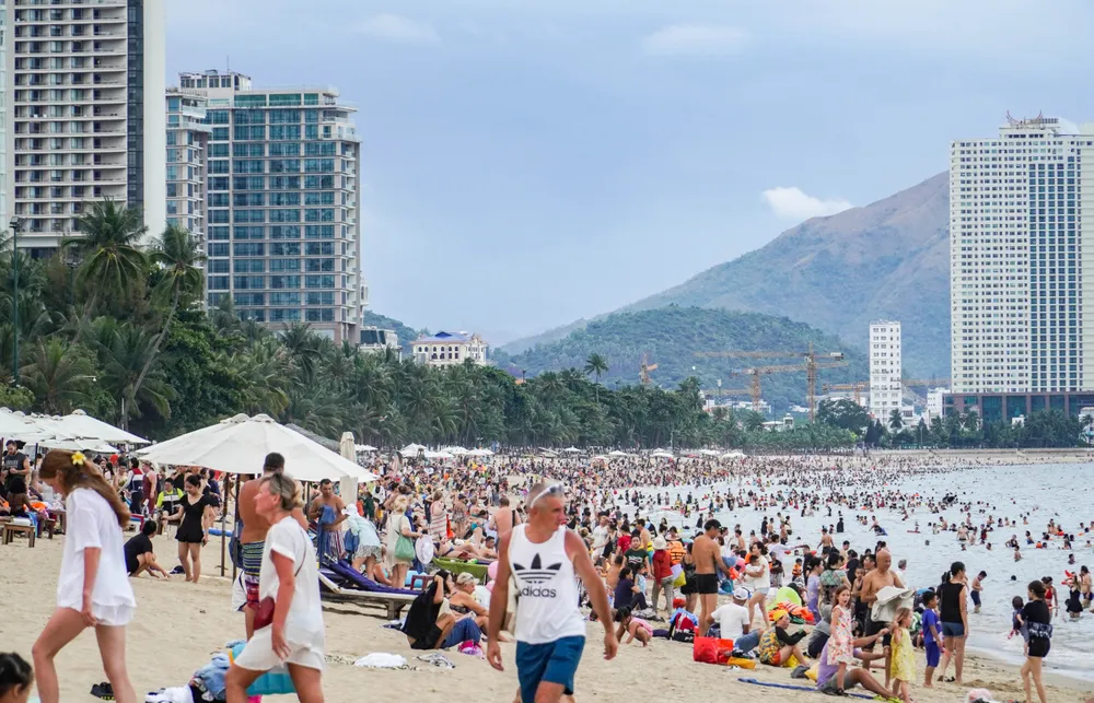 Bãi biển Nha Trang ken kín du khách, người dân địa phương trong những ngày nắng nóng. Ảnh: X.H