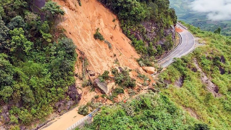 Nhiều điểm sạt lở làm giao thông bị chia cắt tại Quốc lộ 27C.
