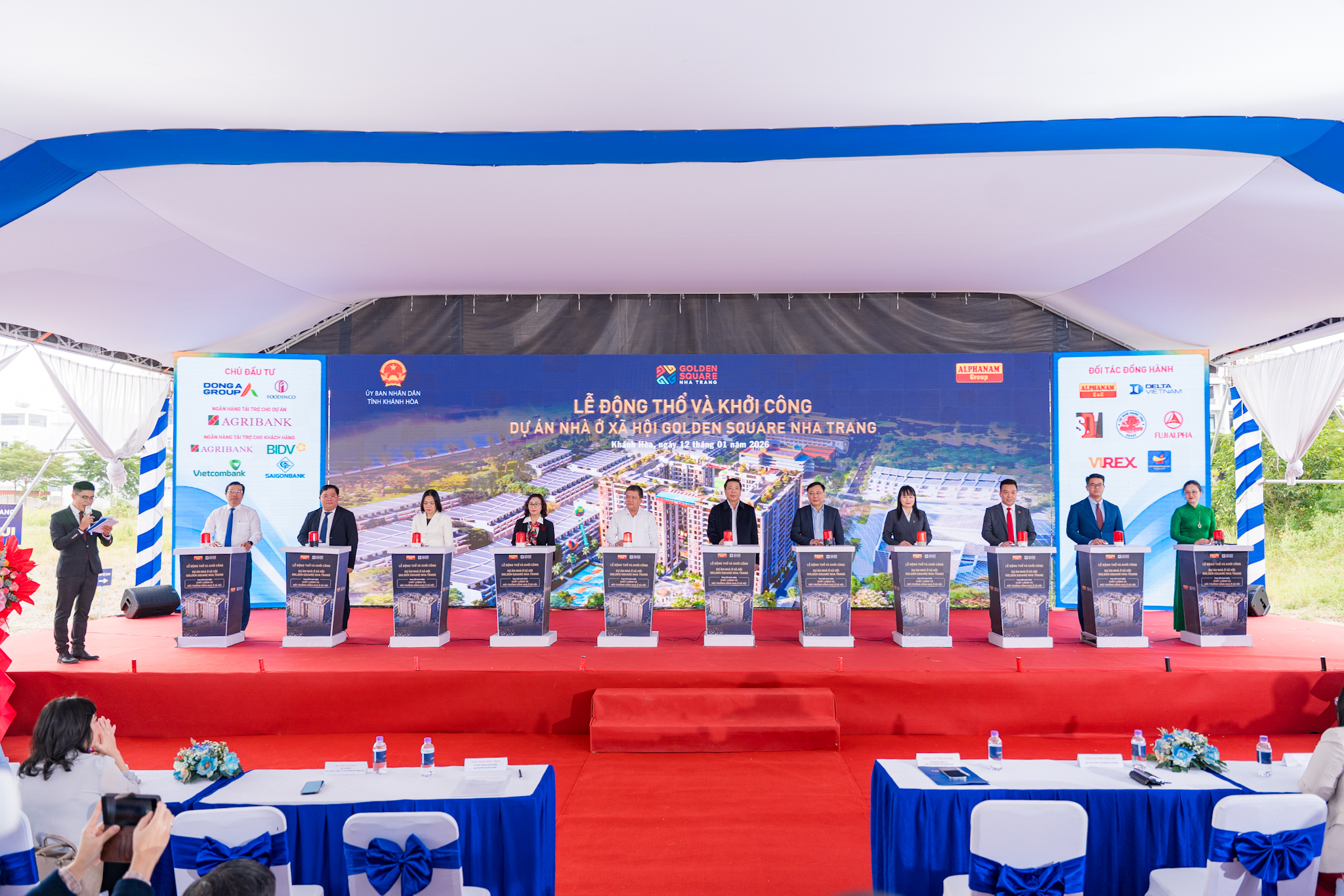 Các đại biểu thực hiện nghi thức khởi công dự án nhà ở xã hội CT-01. Ảnh: HIẾU GIANG