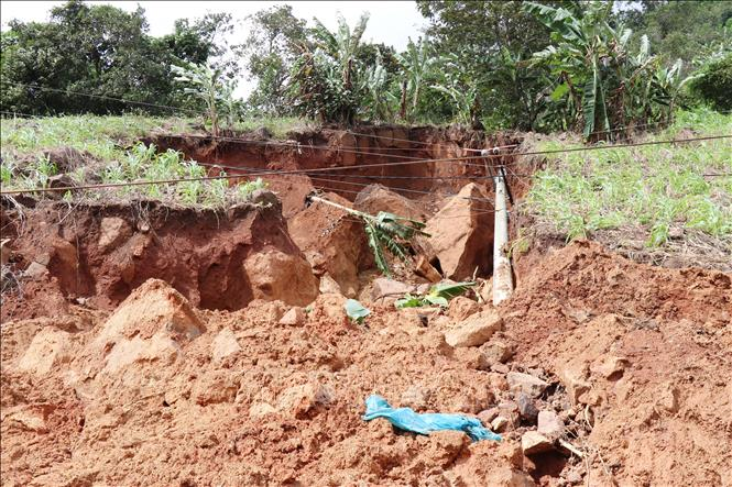 Mưa lũ làm sạt lở sườn núi tại tỉnh Khánh Hòa.