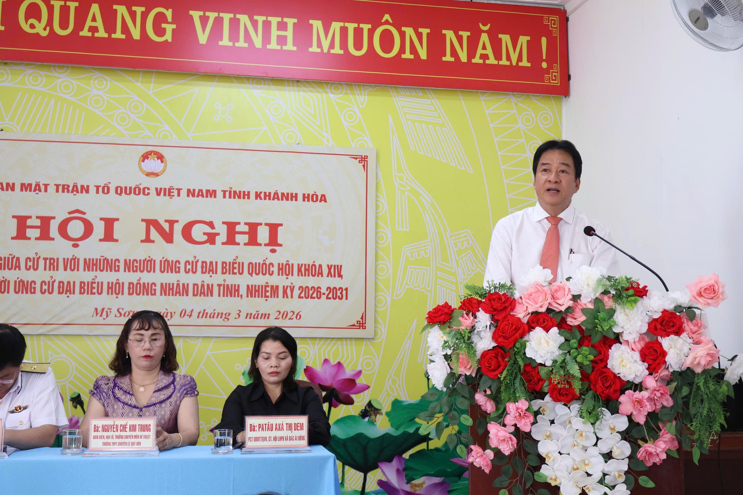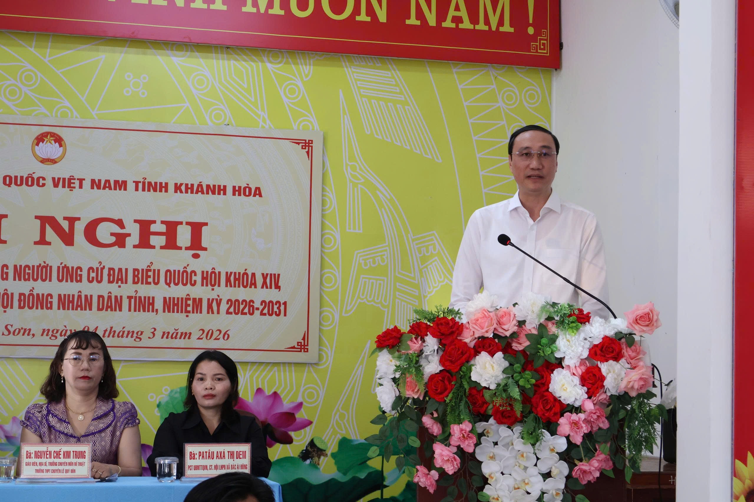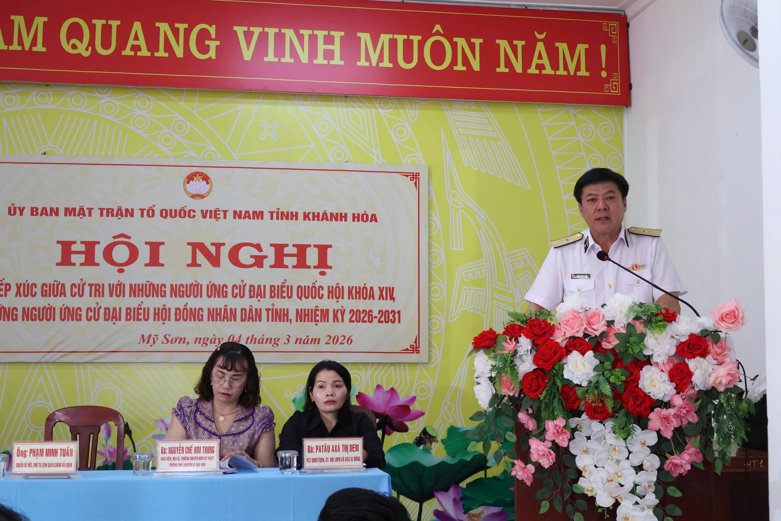 Tại hội nghị, đại diện Ban Thường trực Ủy ban MTTQ Việt Nam tỉnh đã thông qua tiểu sử tóm tắt của những người ứng cử đại biểu Quốc hội Khóa XVI, đơn vị bầu cử số 3 gồm: Phó Bí thư chuyên trách Đảng ủy Quốc hội Phùng Khánh Tài; Chuẩn Đô đốc, Phó Tư lệnh Quân chủng Hải quân Phạm Minh Tuấn; Ủy viên Ban Thường vụ Tỉnh ủy, Giám đốc Sở Dân tộc và Tôn giáo Chamaleá Thị Thủy; giáo viên, họa sĩ, Trưởng chuyên môn Mỹ thuật Trường THPT Chuyên Lê Quý Đôn – Đông Hải Nguyễn Chế Kim Trung; Phó Chủ tịch Ủy ban MTTQ Việt Nam xã, Chủ tịch Hội Liên hiệp Phụ nữ xã Bác Ái Đông Patâu Axá Thị Dem.