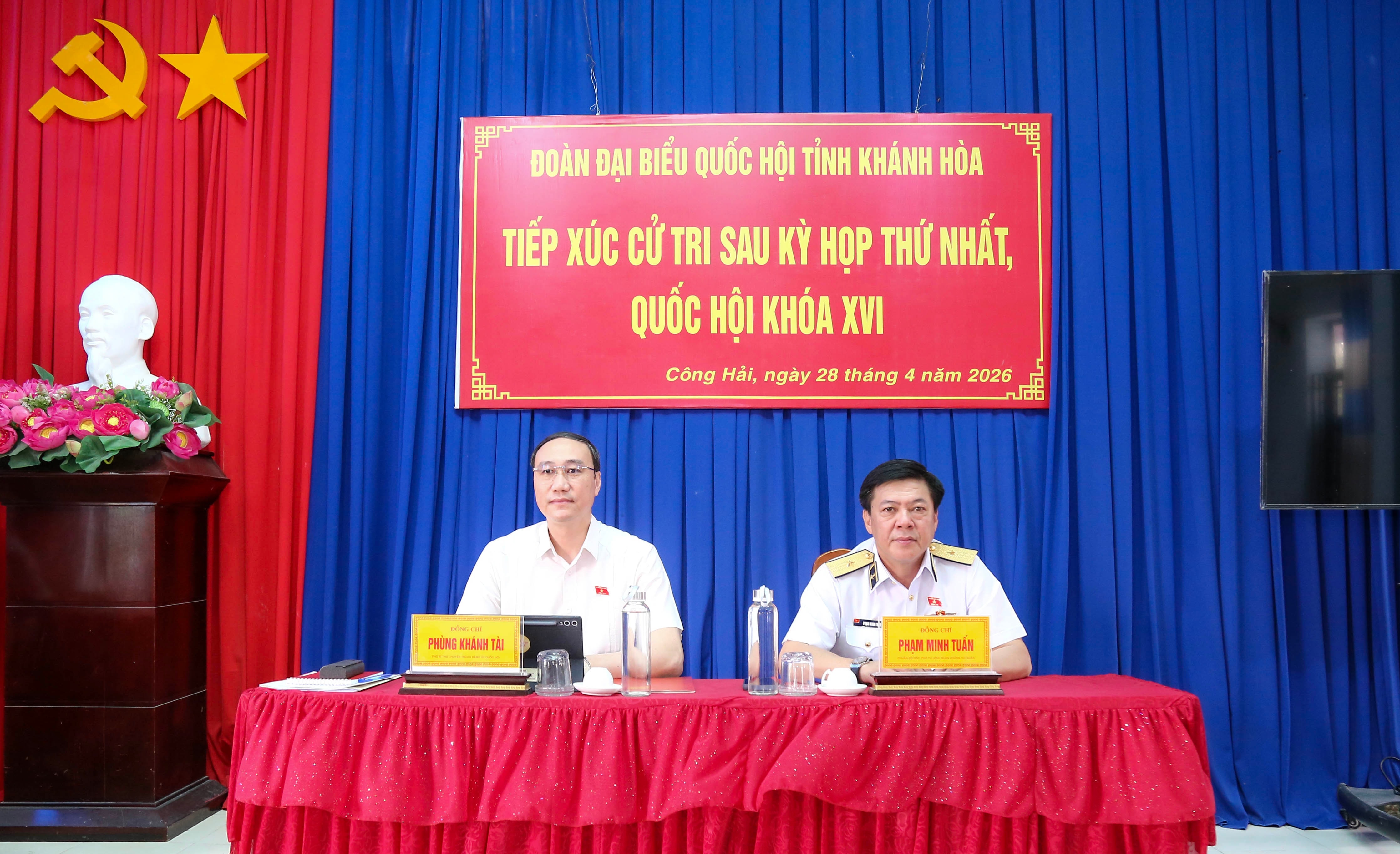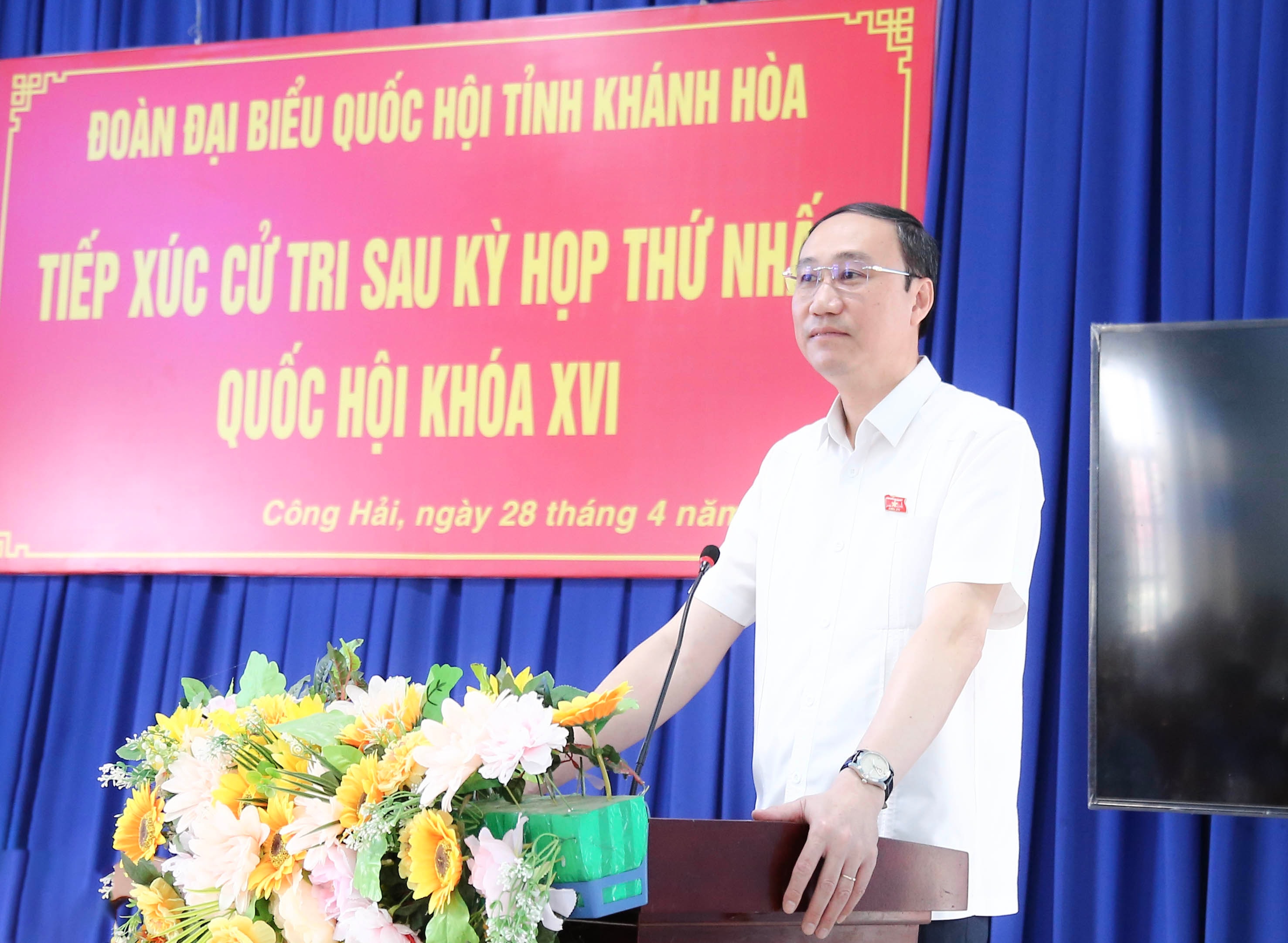 Phát biểu tại buổi tiếp xúc cử tri, Phó Bí thư chuyên trách Đảng ủy Quốc hội Phùng Khánh Tài trân trọng cảm ơn sự tin tưởng, tín nhiệm của cử tri xã Công Hải đối với Đoàn ĐBQH tỉnh Khánh Hòa; đồng thời đánh giá cao các ý kiến tâm huyết, trách nhiệm, chính đáng của cử tri. Đối với các kiến nghị thuộc thẩm quyền của địa phương, một số nội dung đã được đại diện các sở, ngành của tỉnh và UBND xã Công Hải thông tin, làm rõ tại buổi tiếp xúc.
