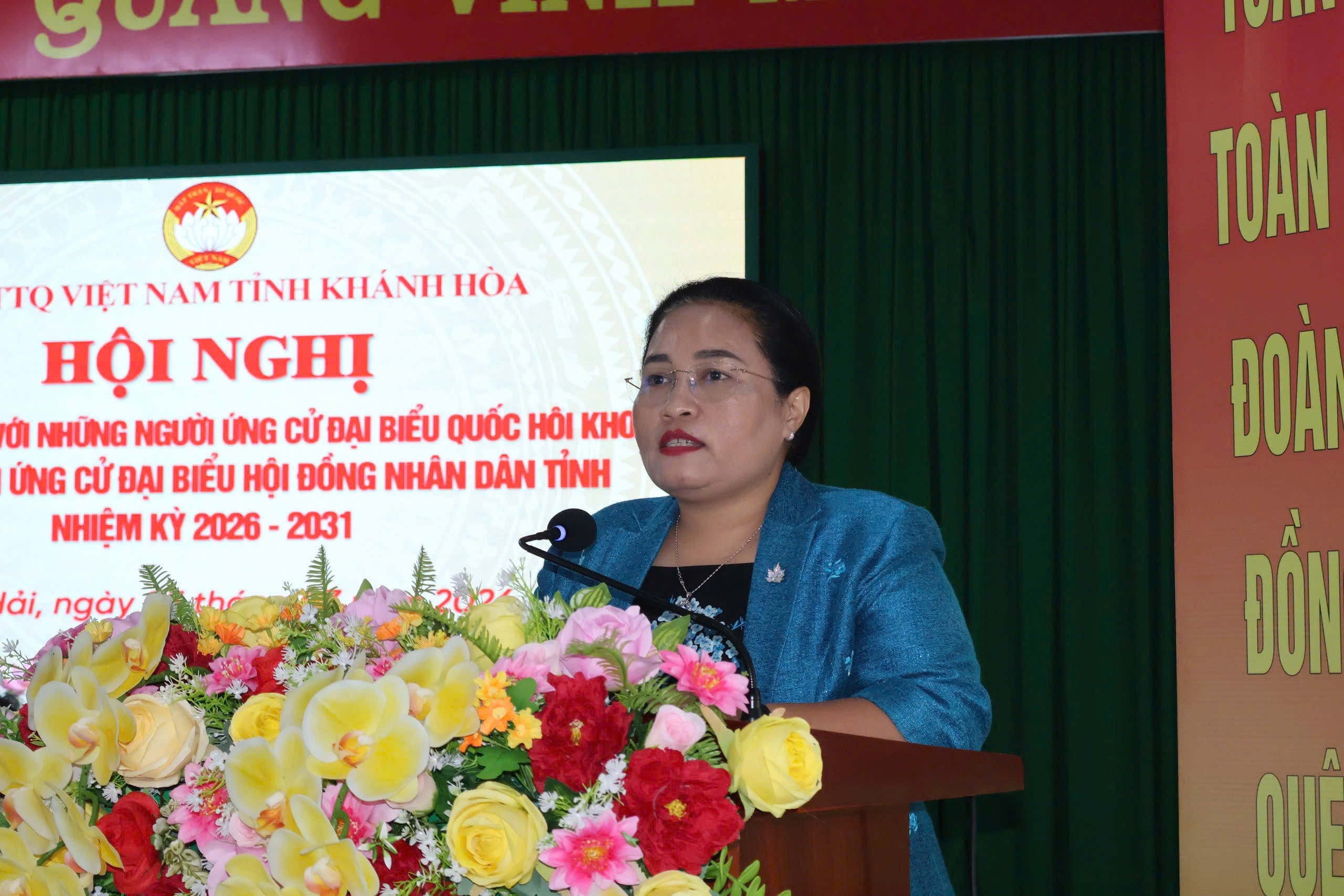 Tại hội nghị, đại diện Ban Thường trực Ủy ban MTTQ Việt Nam tỉnh đã thông qua tiểu sử tóm tắt của những người ứng cử đại biểu Quốc hội Khóa XVI, đơn vị bầu cử số 3, gồm: Phó Bí thư chuyên trách Đảng ủy Quốc hội Phùng Khánh Tài; Chuẩn Đô đốc, Phó Tư lệnh Quân chủng Hải quân Phạm Minh Tuấn; Ủy viên Ban Thường vụ Tỉnh ủy, Giám đốc Sở Dân tộc và Tôn giáo Chamaleá Thị Thủy; giáo viên, họa sĩ, Trưởng chuyên môn Mỹ thuật, Trường THPT Chuyên Lê Quý Đôn - Đông Hải Nguyễn Chế Kim Trung; Phó Chủ tịch Ủy ban MTTQ Việt Nam xã, Chủ tịch Hội Liên hiệp Phụ nữ xã Bác Ái Đông Patâu Axá Thị Dem.