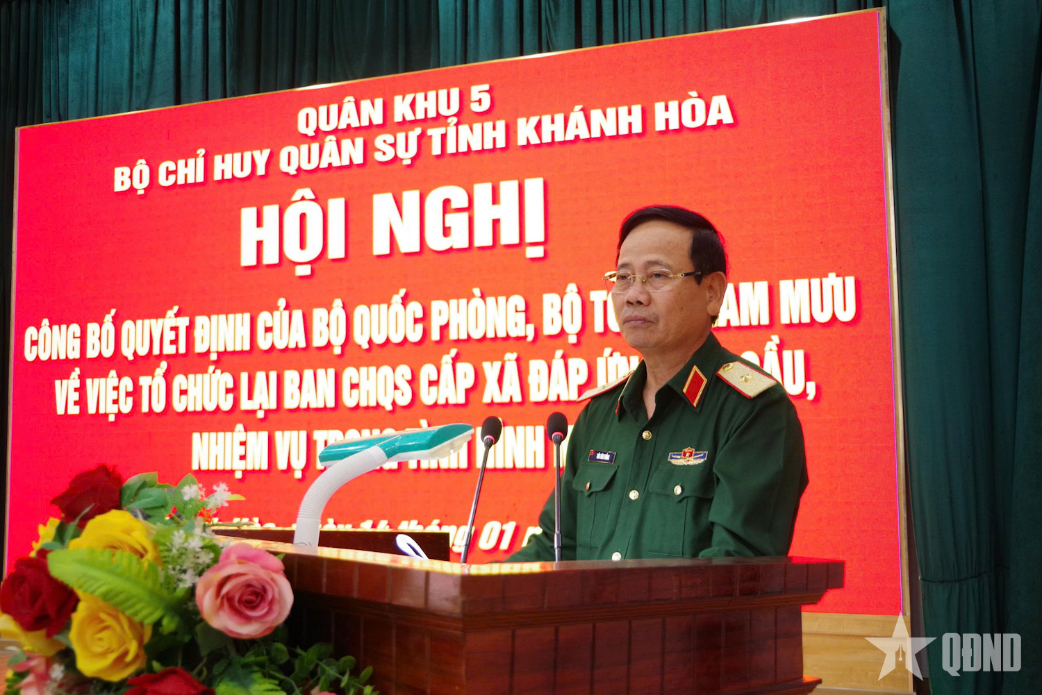 Tại hội nghị, đại diện Bộ CHQS tỉnh Khánh Hòa đã công bố Quyết định của Bộ Quốc phòng về tổ chức lại Ban CHQS cấp xã, phường, đặc khu; công bố Quyết định của Chủ tịch UBND tỉnh Khánh Hòa về miễn nhiệm chức vụ Chỉ huy trưởng Ban CHQS xã, phường.