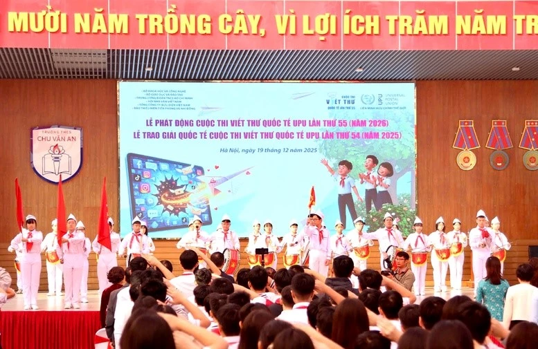 Toàn cảnh lễ phát động cuộc thi Viết thư quốc tế UPU lần thứ 55 tại trường THCS Chu Văn An, Hà Nội. (Ảnh: VGP/HM)