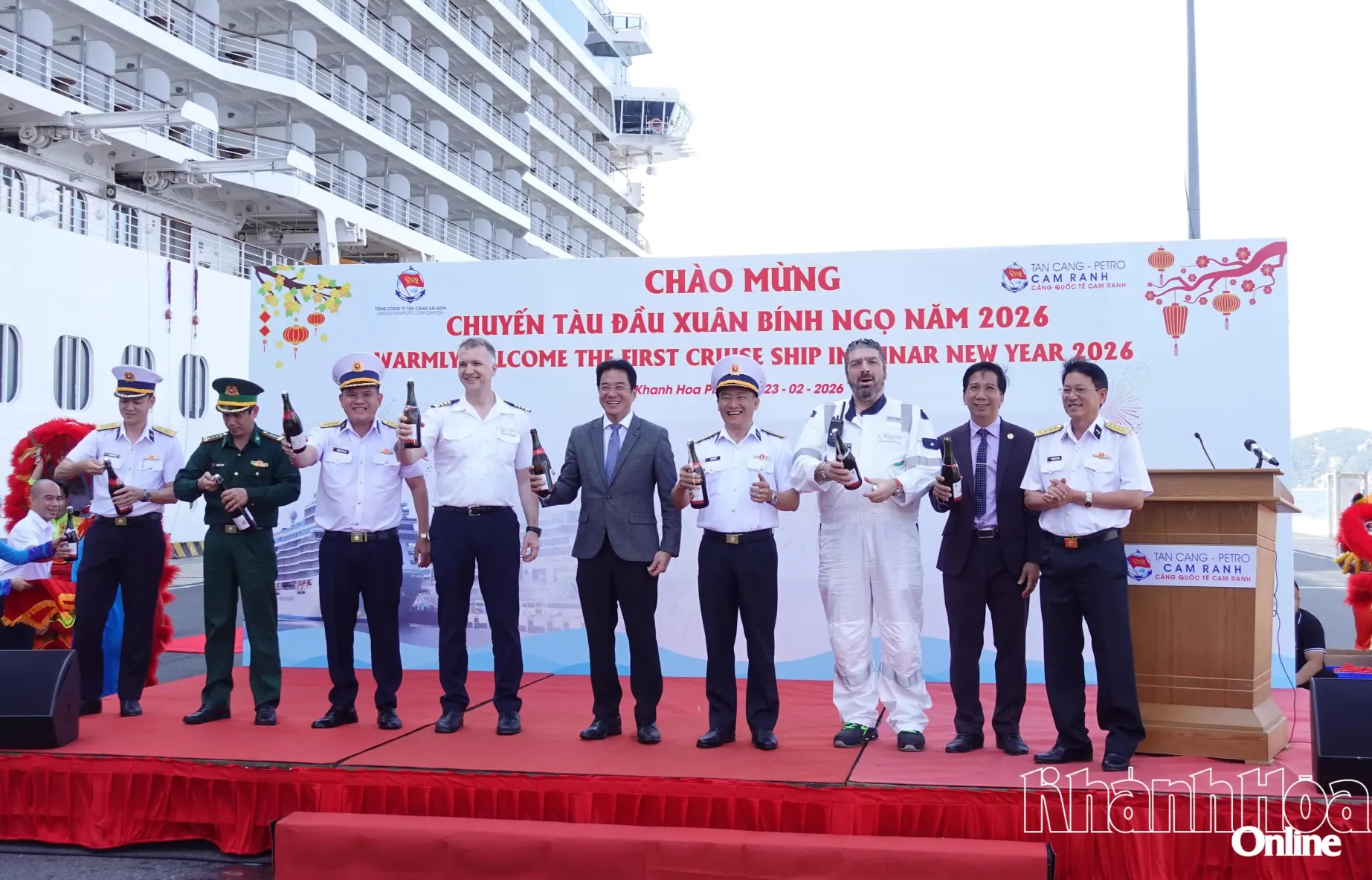 Sáng 23-2, tại Cảng quốc tế Cam Ranh, Công ty TNHH Tân Cảng - Petro Cam Ranh tổ chức lễ đón tàu du lịch quốc tế Seven Seas Explorer cập cảng đầu xuân Bính Ngọ 2026. Tham dự buổi lễ có đồng chí Nguyễn Long Biên - Ủy viên Ban Thường vụ Tỉnh ủy, Phó Chủ tịch Thường trực UBND tỉnh Khánh Hòa; cùng đại diện các sở, ngành, doanh nghiệp...
