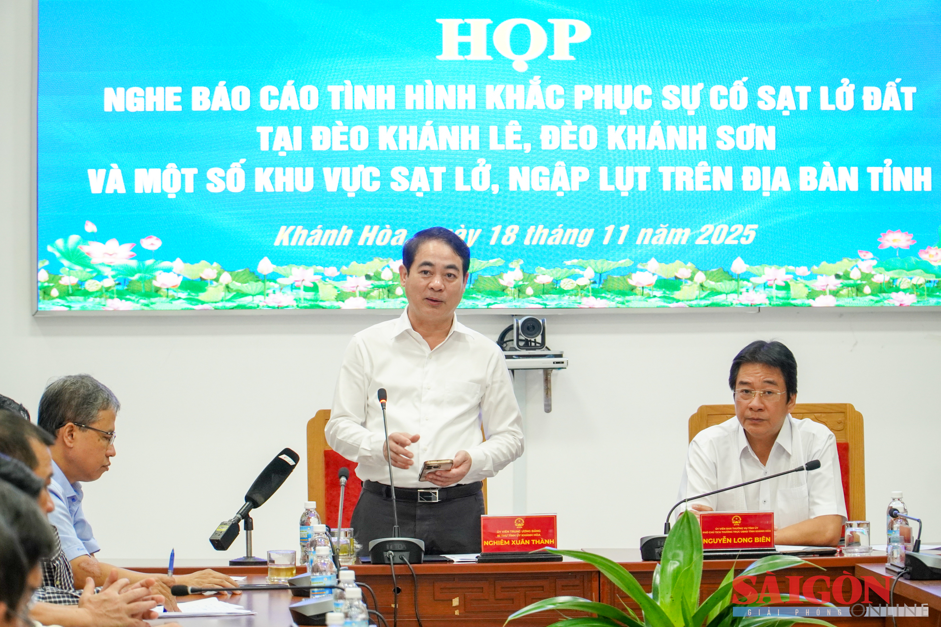 Rạng sáng 18-11, UBND tỉnh Khánh Hòa họp khẩn nghe báo cáo tình hình khắc phục sự cố sạt lở đất tại đèo Khánh Lê, đèo Khánh Sơn và một số khu vực sạt lở, ngập lụt trên địa bàn tỉnh.