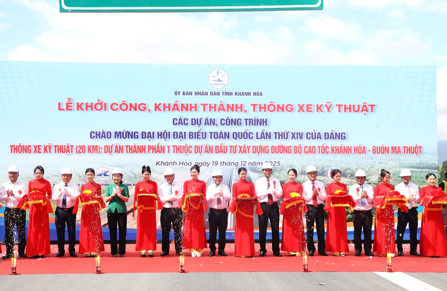 Các đại biểu cắt băng thông xe kỹ thuật đầu tuyến đường bộ cao tốc Khánh Hòa - Buôn Ma Thuột