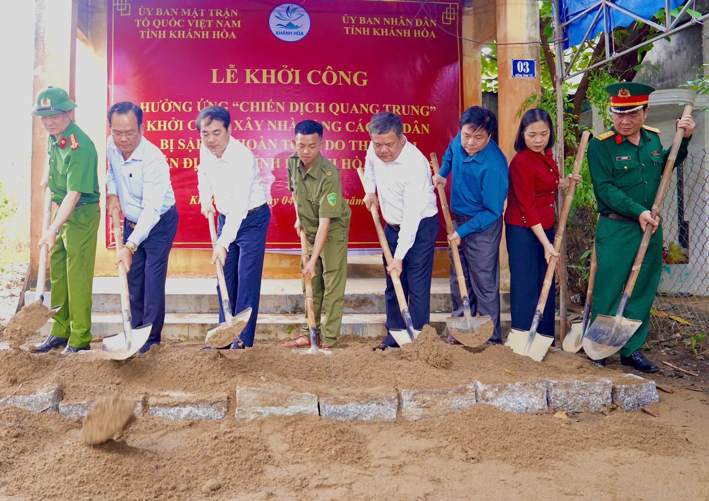 Tại lễ khởi công, ông Trần Phong - Chủ tịch UBND tỉnh Khánh Hòa - đề nghị các sở, ngành, chính quyền địa phương khẩn trương xây dựng kế hoạch hỗ trợ xây mới nhà bị sập và sửa chữa nhà hư hỏng.