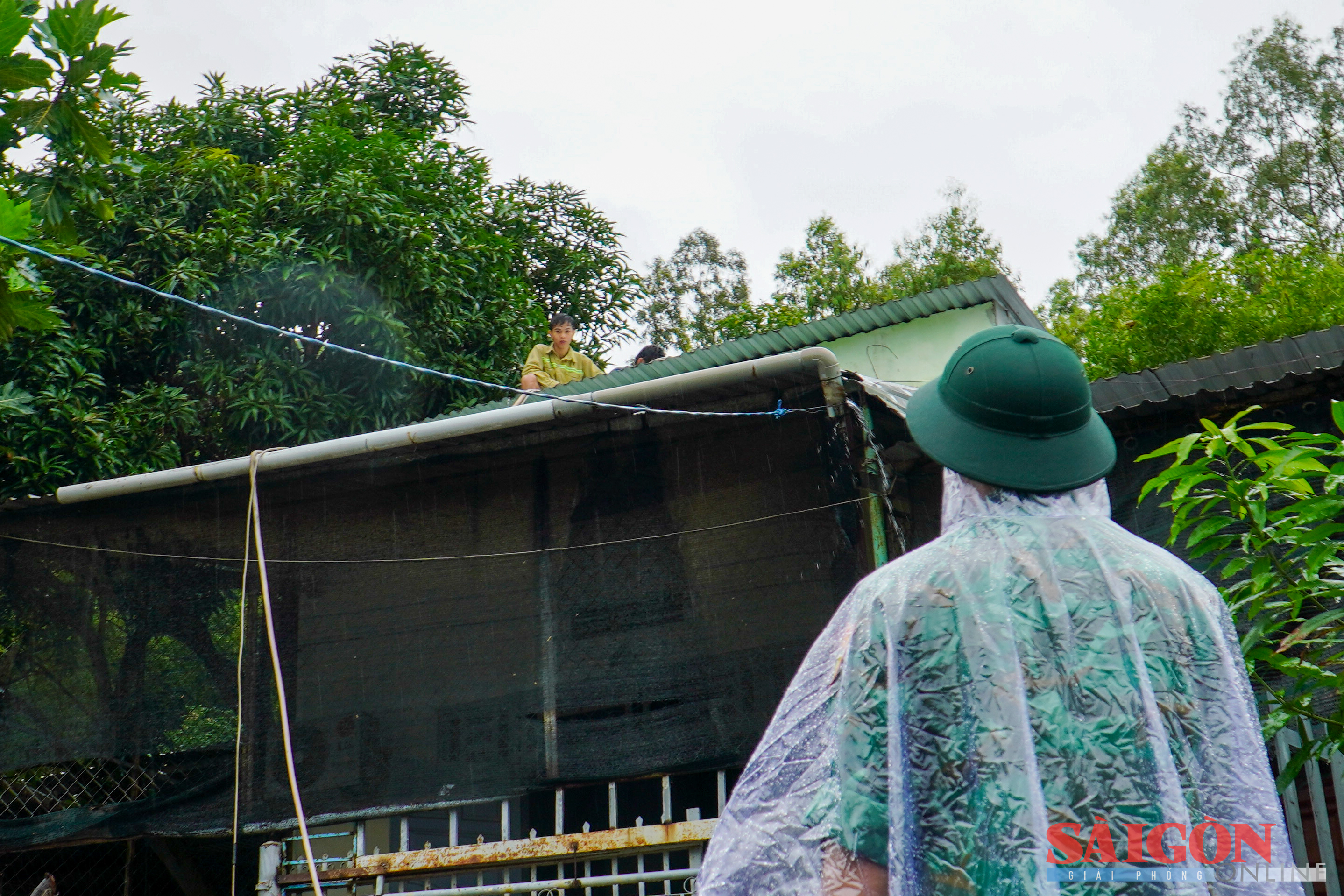 Người dân khu vực Xóm Núi gia cố nhà cửa trước giờ bão số 13 đổ bộ