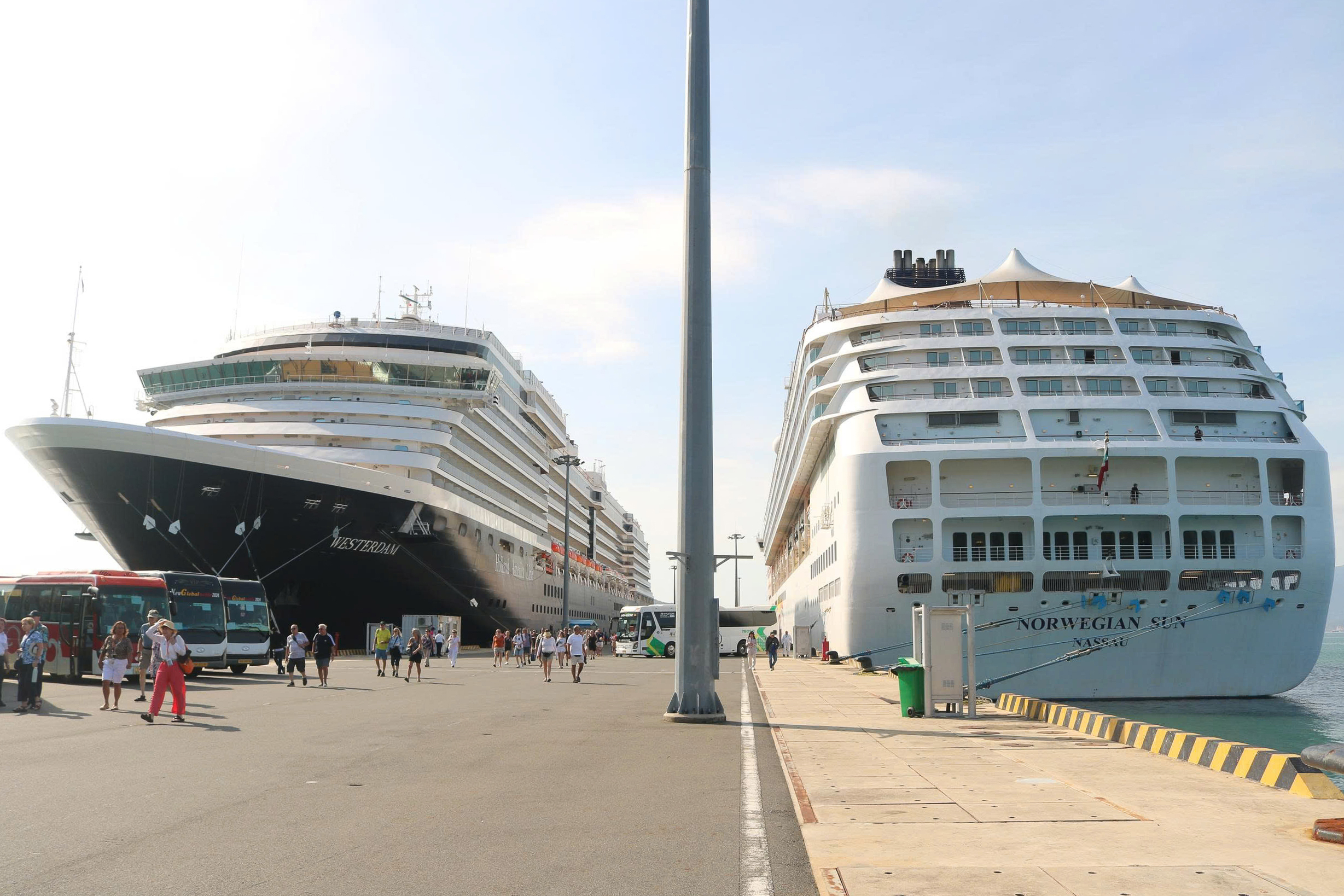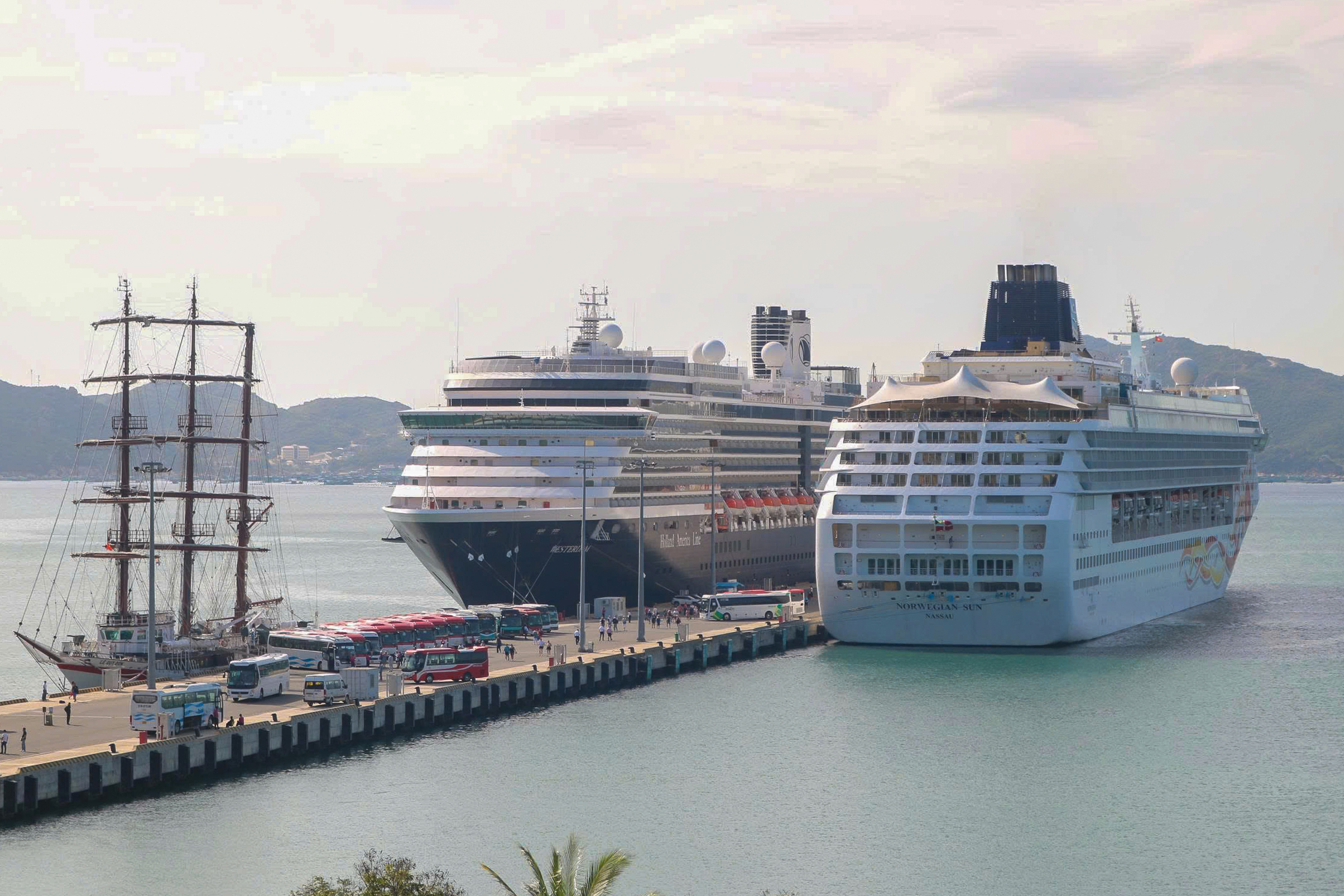 Tàu biển Norwegian Sun và Westerdam cùng cập Cảng quốc tế Cam Ranh, ngày 25-1. Ảnh: ANH PHÁT