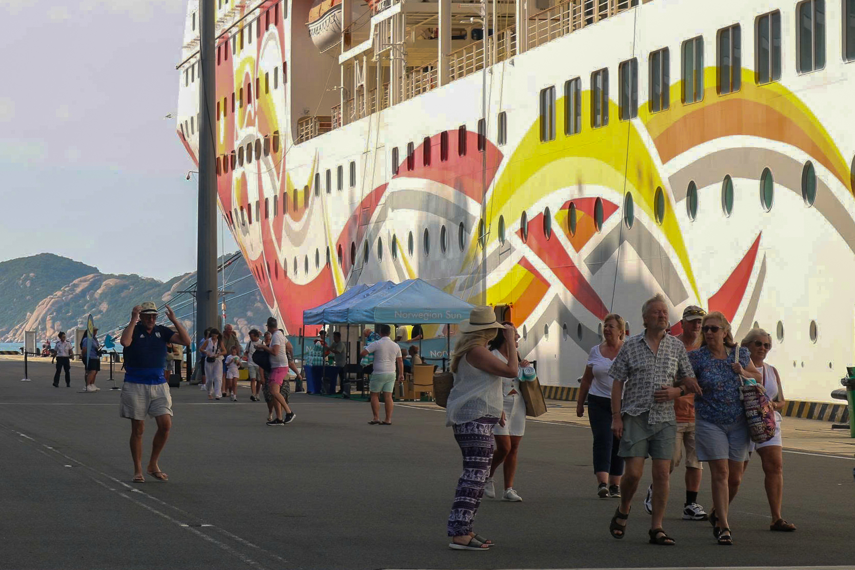 Du khách xuống tàu đi tham quan các điểm du lịch tại Khánh Hòa. Ảnh: ANH PHÁT