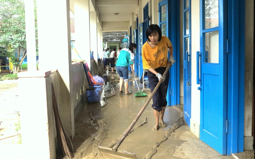 Hiện nhiều trường bị ảnh hưởng nặng nề do mưa lũ vẫn đang tiếp tục khắc phục hậu quả, dự kiến chưa thể cho học sinh đi học trở lại trong vài ngày tới.