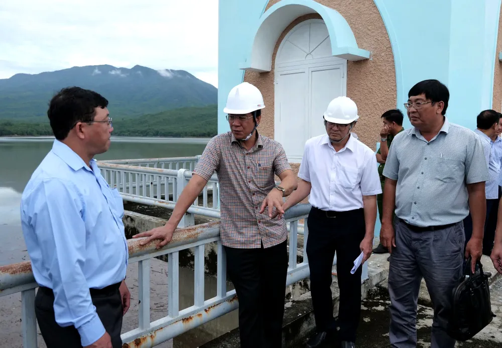 Ngày 5-11, Văn phòng UBND tỉnh Khánh Hòa vừa thông báo hoãn cuộc họp UBND tỉnh thường kỳ tháng 11 để tập trung ứng phó bão số 13. Trong sáng cùng ngày, các lãnh đạo UBND tỉnh Khánh Hòa đã tổ chức các đoàn kiểm tra thực tế công tác ứng phó bão số 13. Trong ảnh, ông Nguyễn Long Biên, Phó chủ tịch UBND tỉnh (thứ 2 từ trái qua), đang chỉ đạo công tác điều tiết tại hồ Tân Giang.