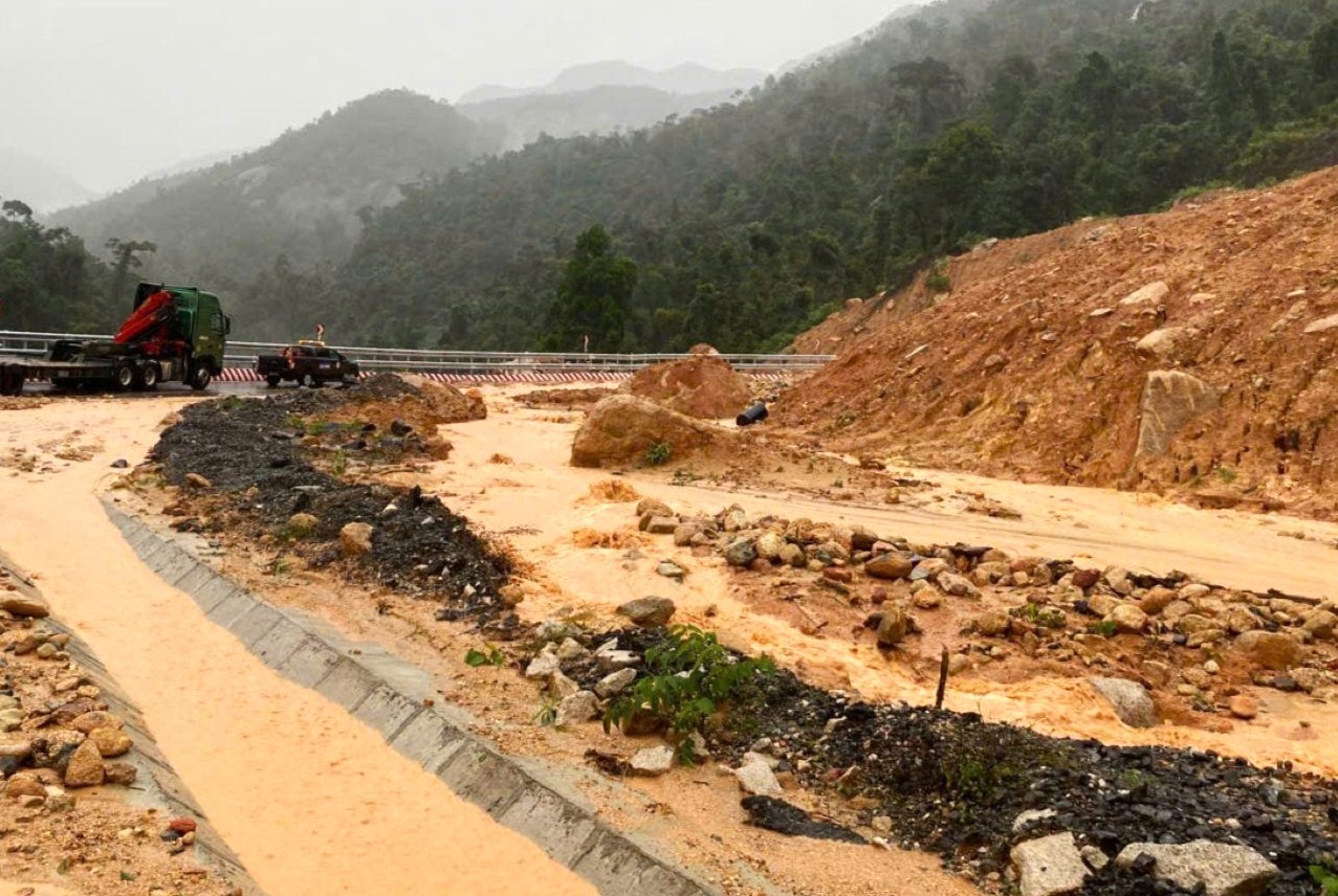 Hiện tại mưa vẫn đang rất lớn, nước đổ về nhiều trên tuyến Quốc lộ 27C. Trên tuyến cũng xuất hiện nhiều điểm sạt lở. Để ứng cứu, lực lượng chức năng của tỉnh phải băng qua núi khoảng 3km để tiếp cận hiện trường.