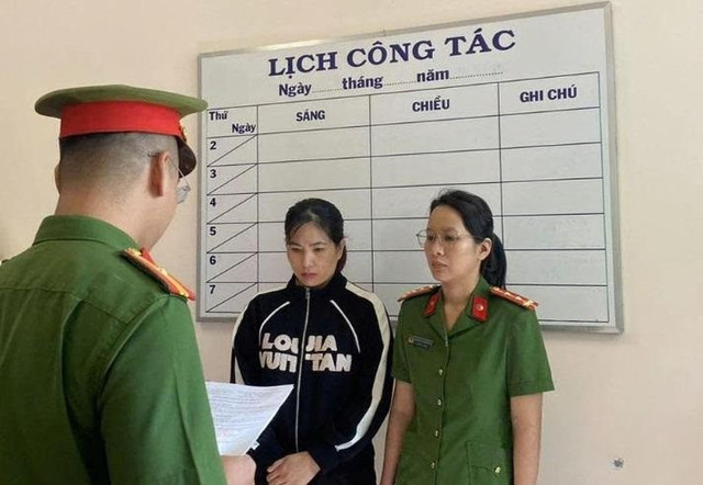 Lực lượng chức năng đọc lệnh khởi tố bị can Nguyễn Thị Hào (Ảnh: CACC)