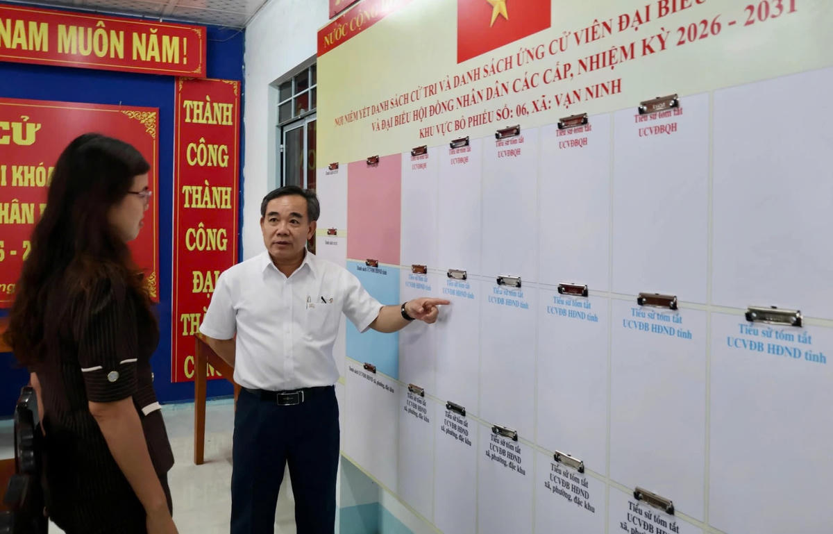Ông Lê Hữu Trí, Phó Trưởng đoàn phụ trách ĐBQH tỉnh, Phó Chủ tịch Ủy ban Bầu cử tỉnh, Trưởng Tiểu ban Tuyên truyền bầu cử tỉnh Khánh Hòa, kiểm tra công tác tuyên truyền bầu cử đại biểu Quốc hội khóa XVI và đại biểu HĐND các cấp nhiệm kỳ 2026 - 2031 tại xã Vạn Ninh. Ảnh X.H