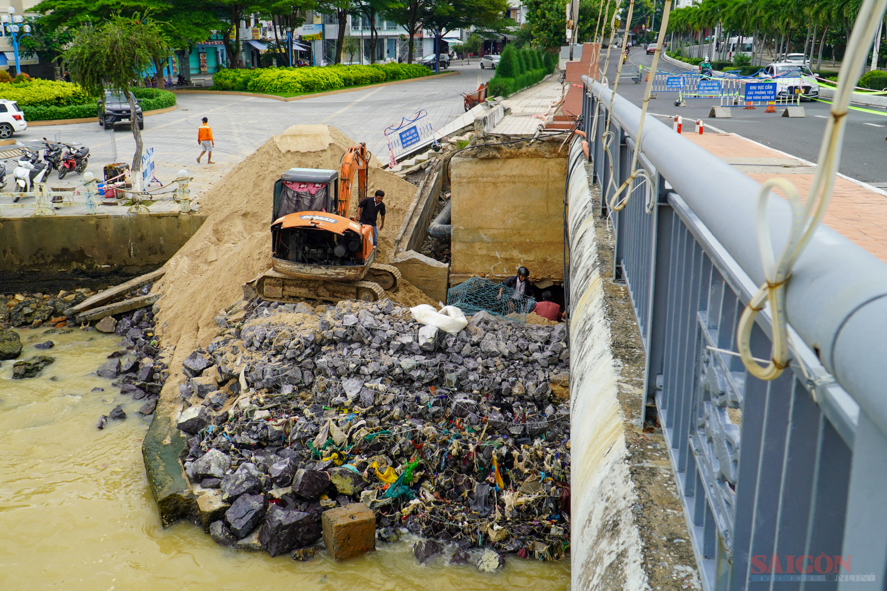 Sau đợt mưa lũ lịch sử kết hợp triều cường và sóng lớn, khu vực tứ nón và mố bên phải cầu Trần Phú (hướng từ Bắc sang Nam) bị xói lở nghiêm trọng, tiềm ẩn nguy cơ mất an toàn giao thông.