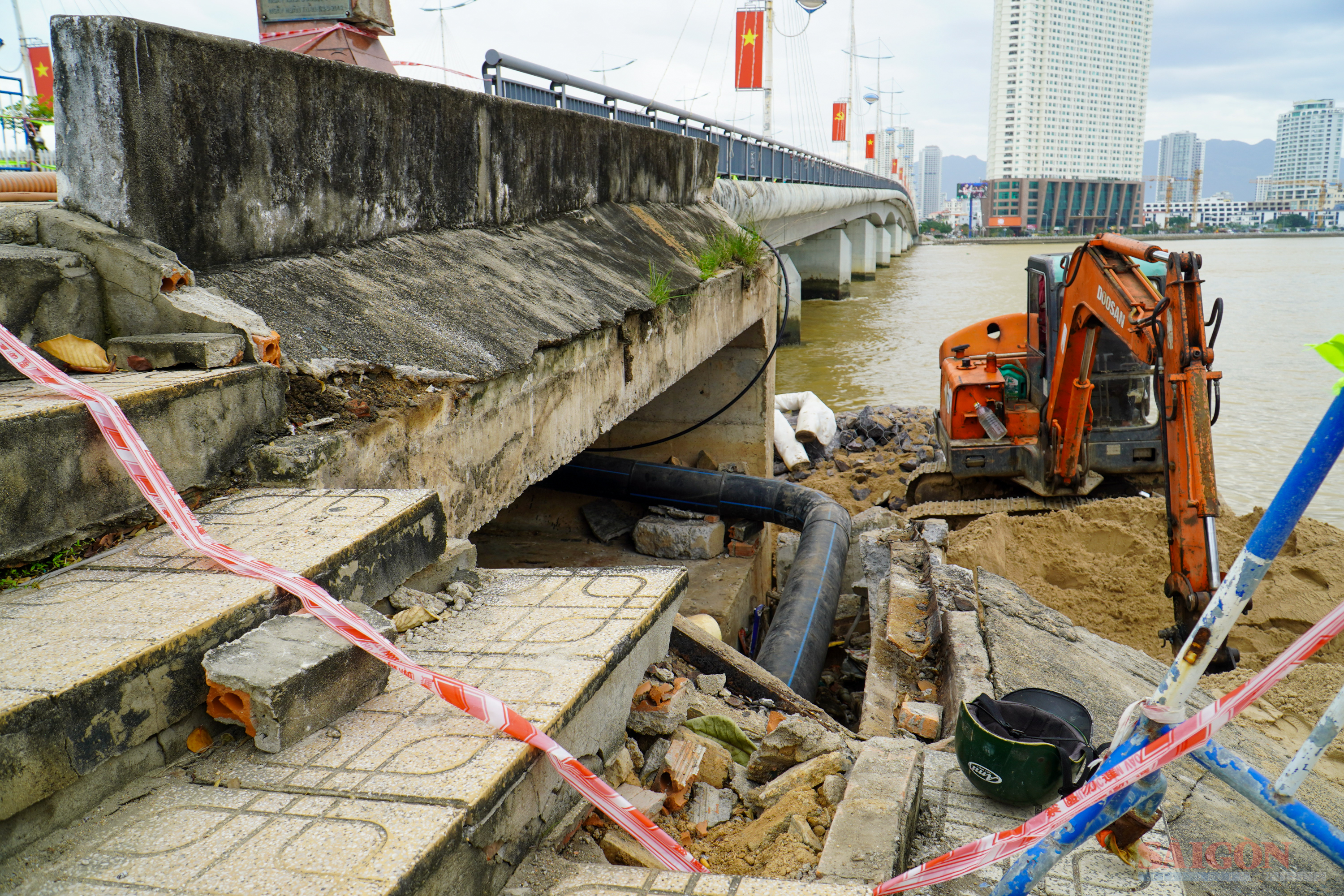 Mố cầu Trần Phú sạt lở nghiêm trọng. Thực hiện: HIẾU GIANG