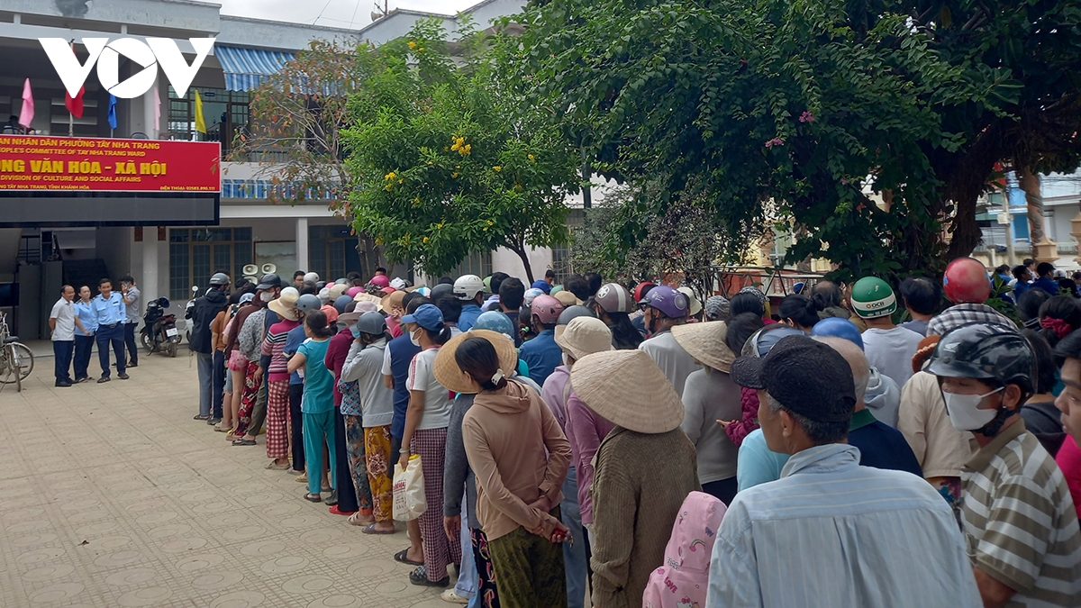 Tại các điểm bán hàng 0 đồng ở các vùng lũ Khánh Hòa, dòng người đến nhận rau nối dài, mọi người đều kiên nhẫn chờ đợi. Chị Phan Thị Mẫn, thôn Phú Trung, xã Tây Nha Trang chia sẻ, rau xanh 0 đồng được cung cấp rất kịp thời, giúp bà con bớt gánh nặng chi tiêu những ngày vừa gượng dậy sau lũ : “Ở ngoài chợ rau rất đắt, có gian hàng 0 đồng, tôi vào lấy cho gia đình. Mấy ngày nay chỉ có mì gói, thực phẩm khô thôi, không có rau củ gì cả”.
