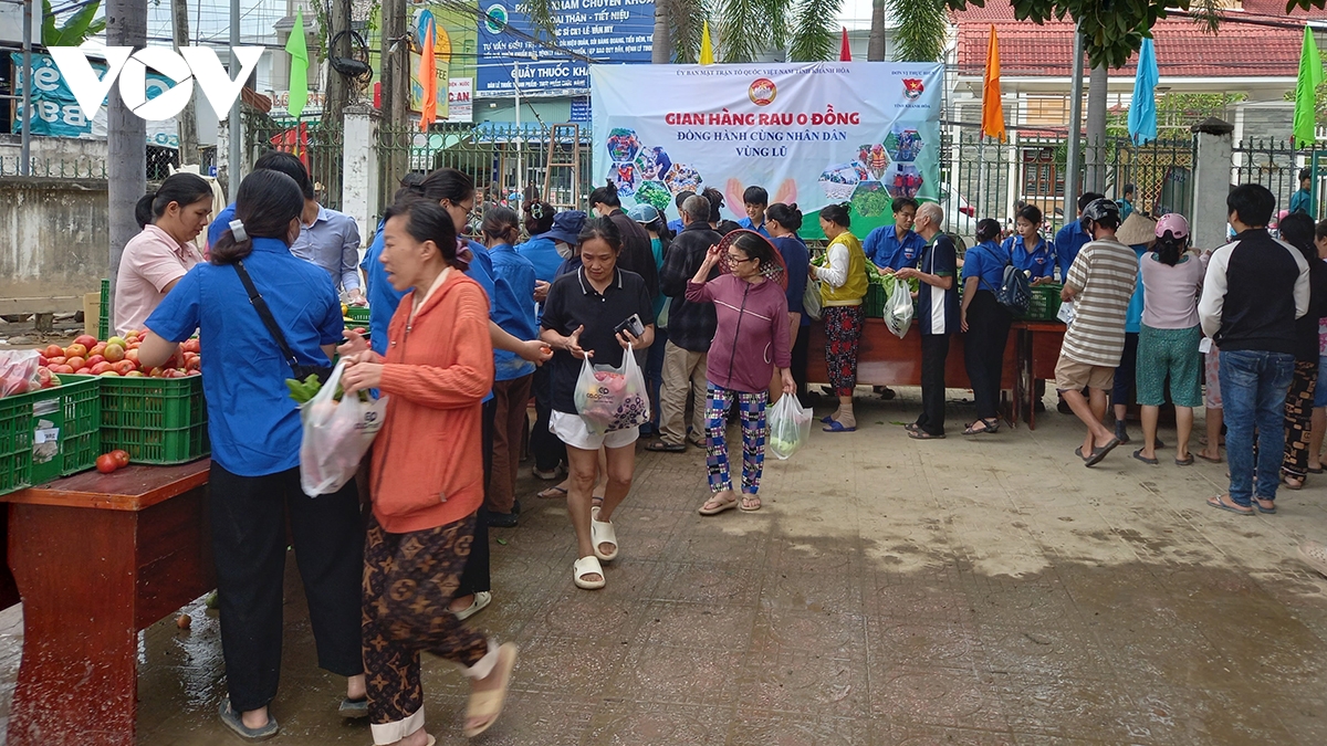 Tại xã Diên Điền, từ sáng sớm, đoàn viên thanh niên và cán bộ Mặt trận đã bài trí gian hàng. Những sọt cải ngọt, mồng tơi, rau muống xanh mơn mởn được xếp thành dãy, tạo nên một phiên chợ nhỏ nhưng ấm áp giữa những ngày địa phương còn ngổn ngang sau lũ. Nguồn rau tại chỗ đã bị lũ lớn phá hư hoàn toàn, chợ khan hàng, giá rau leo thang… khiến "gian hàng 0 đồng" trở thành cứu cánh kịp thời cho bà con lúc này. Cụ già chống gậy, mẹ bế con nhỏ, và cháu thiếu nhi, ai cũng vui khi nhận được những túi rau bình dị.