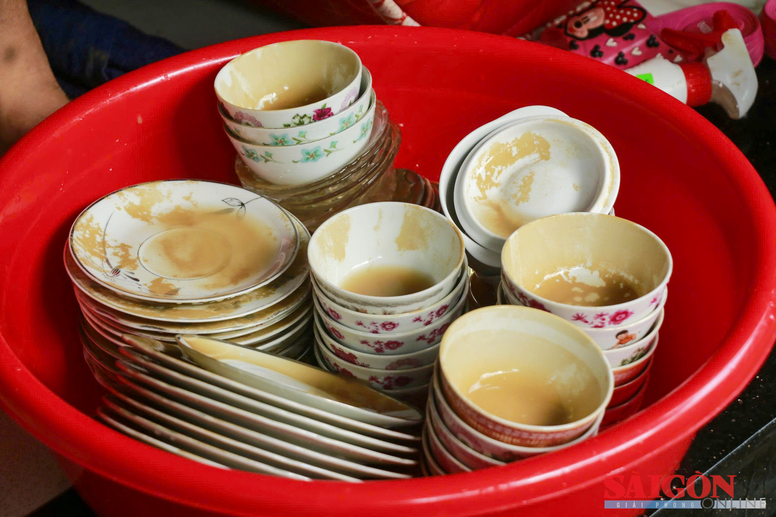 Bát đĩa của người dân phường Tây Nha Trang phủ đầy bùn đất sau nhiều ngày ngâm trong nước lũ. Nước vừa rút, bà con tranh thủ dọn dẹp trước khi bùn khô bám chặt.