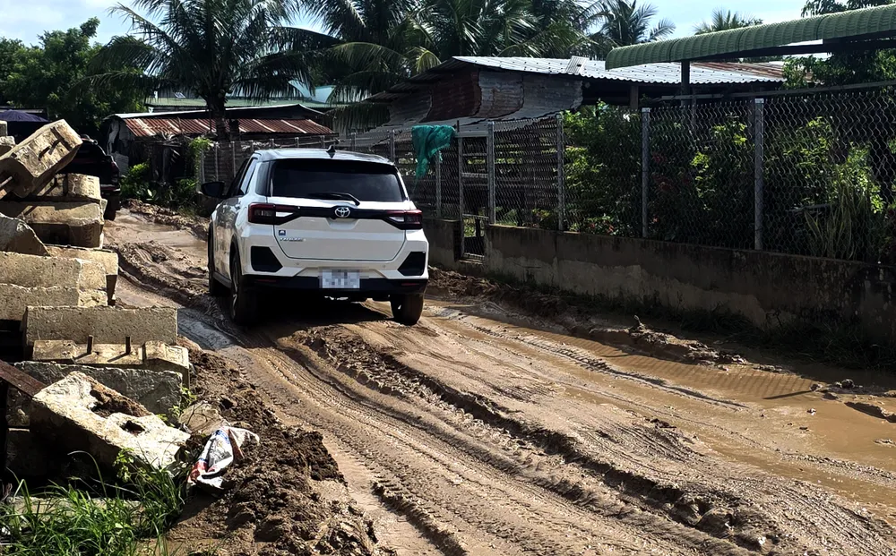 Theo ghi nhận của PV, con đường dân sinh này dài khoảng 2 km nằm giữa thôn An Hòa và thôn Thành Sơn, xã Xuân Hải. Hiên con đường cấp phối này đang lầy lội như ruộng cày, với đầy những ổ trâu, bùn nhão khiến người đi đường có thể bị té ngã bất cứ lúc nào.
