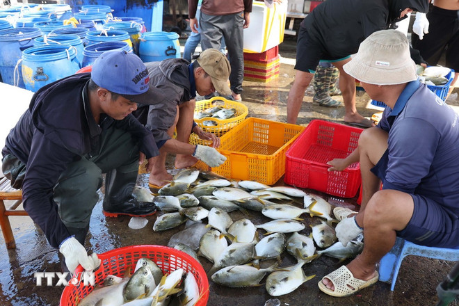 Trong khi đó, giá cá chim cũng giảm, chỉ còn 75.000-80.000 đồng/kg, thấp hơn 20.000 đồng so với bình thường. Dù giá giảm, hoạt động thu mua vẫn diễn ra nhộn nhịp.