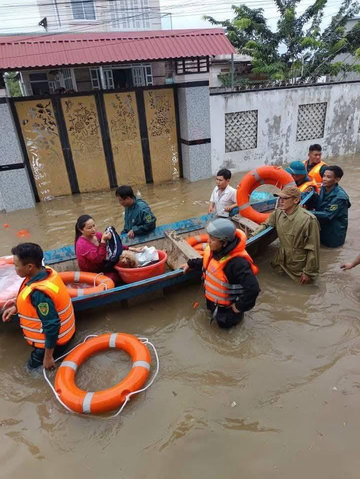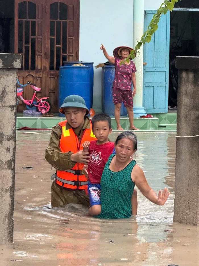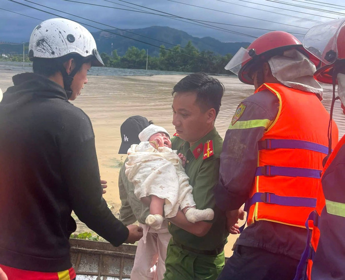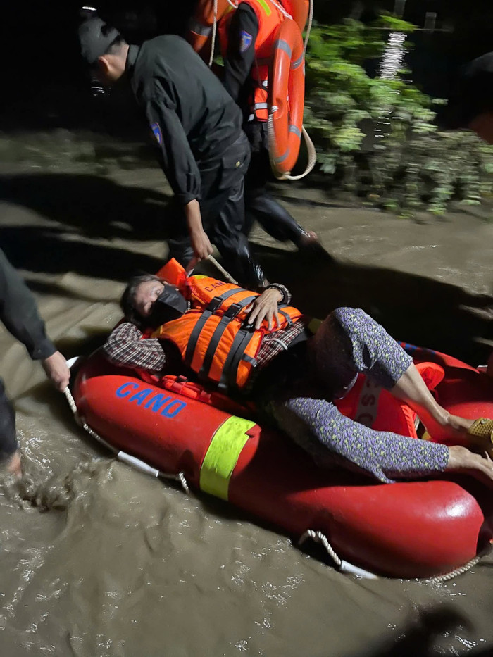 Lực lượng chức năng hỗ trợ đưa người già đến nơi an toàn. Ảnh: Page 79 Khánh Hòa