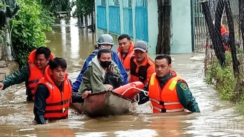 Lực lượng cứu hộ cứu hộ cứu nạn đưa người dân ra khỏi vùng bị ngập
