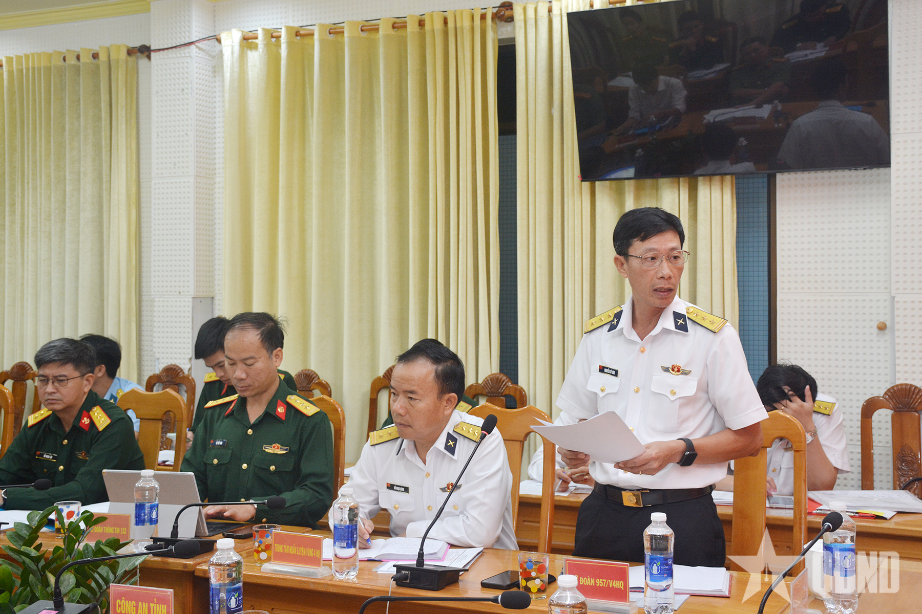Chỉ huy Lữ đoàn 957, Vùng 4 Hải quân phát biểu thảo luận.