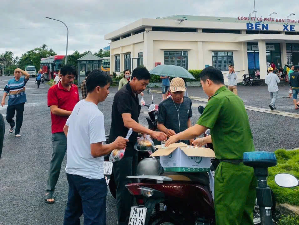 Công an xã Vạn Thắng phối hợp đoàn thanh niên và các mạnh thường quân phát gần 1.000 phần ăn cho người dân và tài xế bị kẹt tại bến xe Vạn Ninh, dọc Quốc lộ 1 và cao tốc Bắc - Nam đoạn qua địa bàn xã.