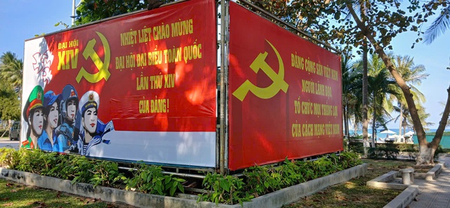 Pa-nô chào mừng Đại hội XIV của Đảng lắp đặt trang trọng tại nhiều công viên ở Khánh Hòa.