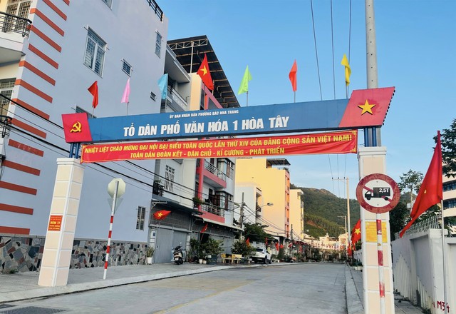 Nhiều khu phố ở Bắc Nha Trang (Khánh Hòa) trang trí trang trọng chào mừng Đại hội XIV của Đảng.