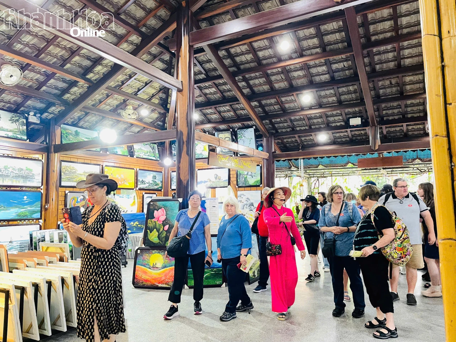 Khách du lịch tàu biển tham quan Làng nghề Trường Sơn.