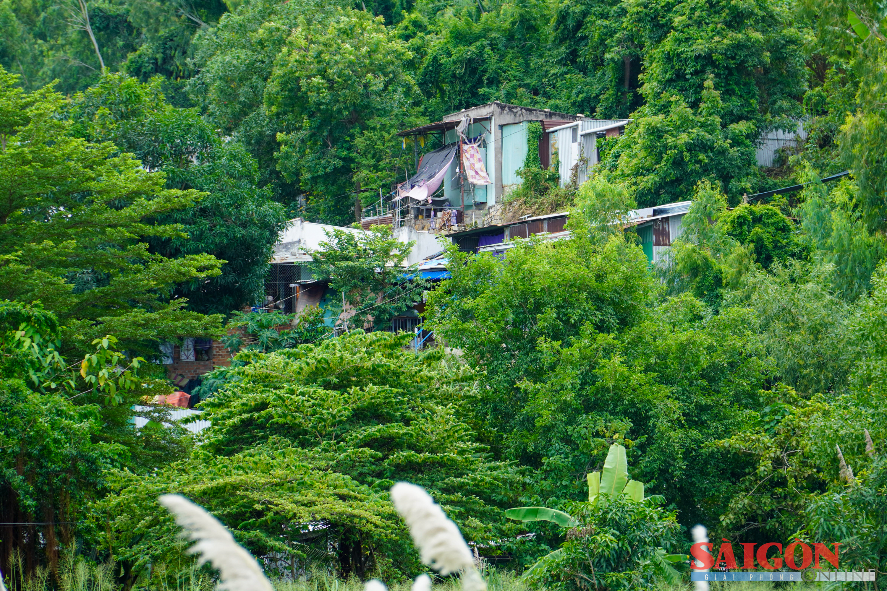 Hiện người dân đang sống trong các căn nhà tạm, lợp mái tôn, nằm ở độ dốc cao, hệ thống dây điện chằng chịt.