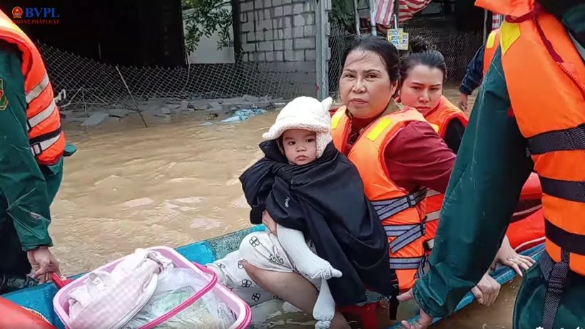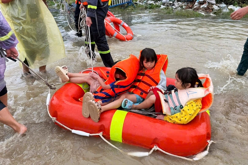 Hoạt động ứng cứu ưu tiên người già và các cháu nhỏ. Ảnh: BP.