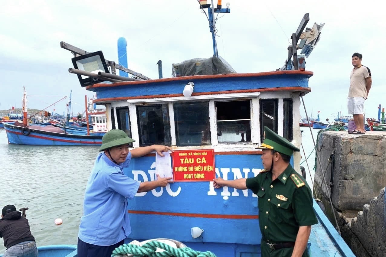 Đồng thời phối hợp chính quyền địa phương kiểm tra tình trạng phương tiện. Qua rà soát, đơn vị đã gắn biển "không đủ điều kiện hoạt động" đối với 21 tàu cá nhằm siết chặt quản lý, phòng ngừa vi phạm.