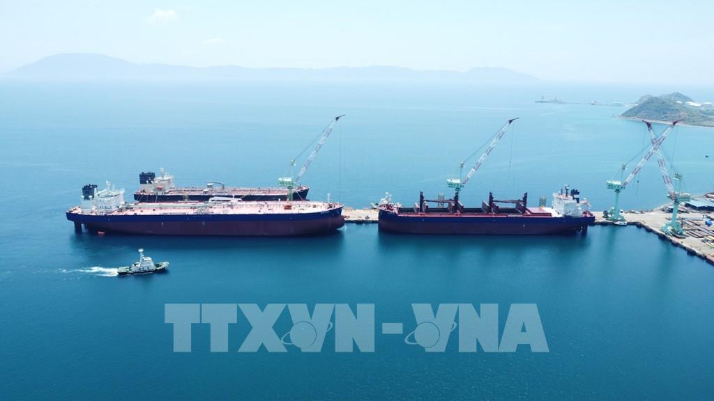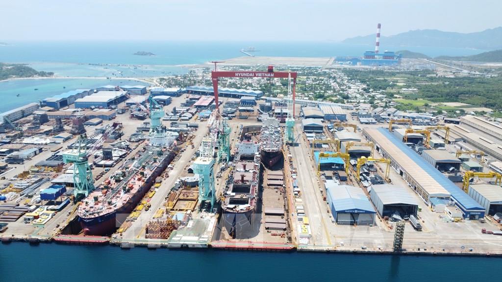 Nhà máy đóng tàu Hyundai – Vinashin (nay là Công ty TNHH Đóng tàu HD Hyundai Việt Nam - HVS) là dự án công nghiệp quy mô lớn, hoạt động hiệu quả tại Khu kinh tế Nam Vân Phong. Ảnh: Đặng Tuấn-TTXVN