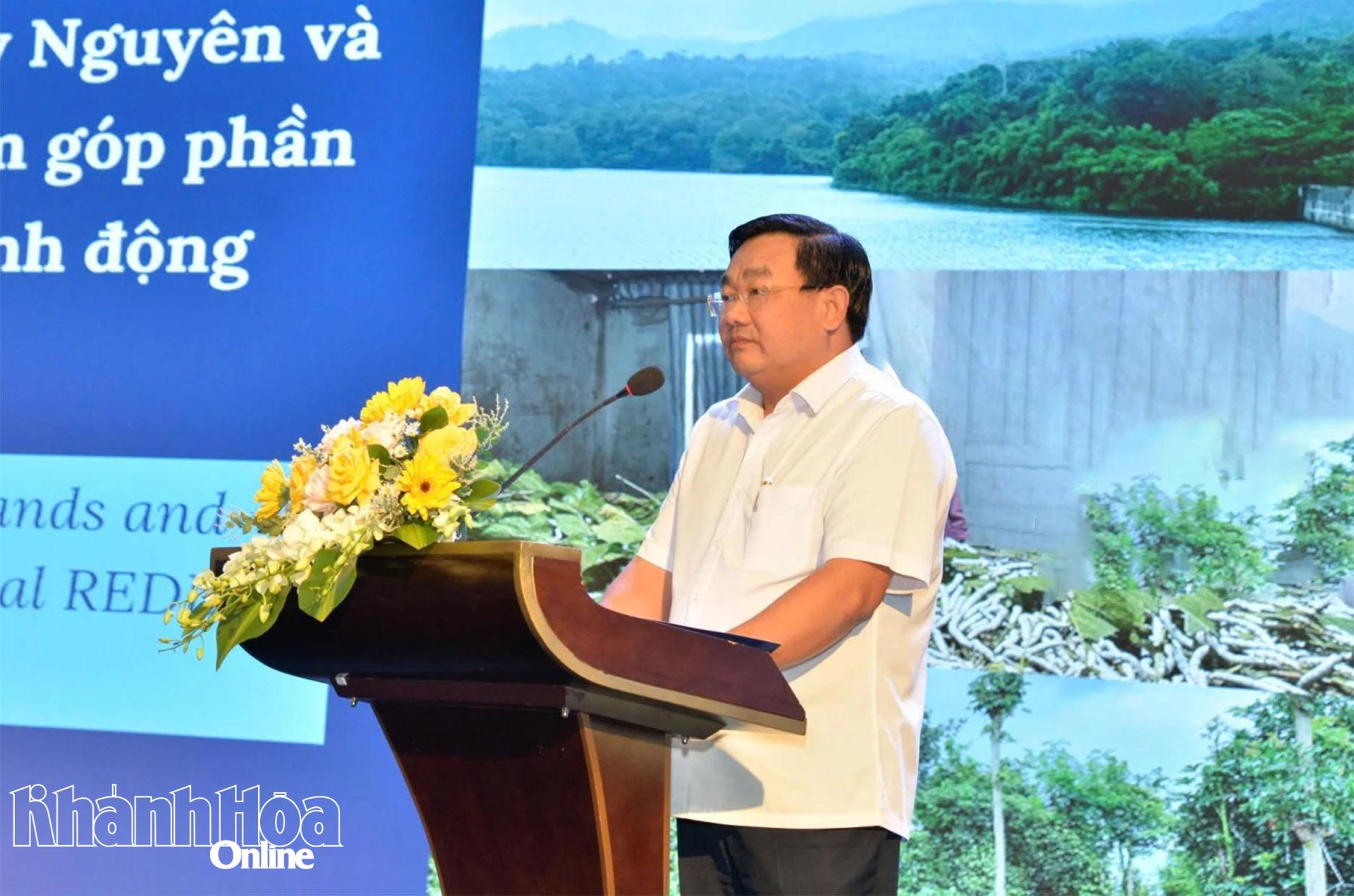 Phát biểu tại hội thảo, Phó Chủ tịch UBND tỉnh Trịnh Minh Hoàng khẳng định, trong bối cảnh Việt Nam đang nỗ lực thực hiện các cam kết quốc tế về ứng phó biến đổi khí hậu và mục tiêu đạt phát thải ròng bằng “0” vào năm 2050, Dự án RECAF có ý nghĩa thiết thực đối với khu vực Duyên hải Nam Trung Bộ, nơi hệ sinh thái rừng giữ vai trò quan trọng trong bảo vệ môi trường, sinh kế người dân và an ninh sinh thái. Đồng chí nhấn mạnh, Khánh Hòa đánh giá cao mục tiêu của dự án trong việc gắn bảo vệ, phát triển rừng với cải thiện đời sống người dân, coi đây là hướng đi phù hợp để thúc đẩy phát triển bền vững. Đồng chí cũng khẳng định cam kết của tỉnh trong việc triển khai dự án minh bạch, đúng quy định, phát huy sự tham gia thực chất của cộng đồng, lấy người dân làm trung tâm; đồng thời tăng cường phối hợp với các tỉnh trong vùng và các cơ quan Trung ương để triển khai dự án đồng bộ, hiệu quả, tạo ra tác động lâu dài trong giảm phát thải và thích ứng với biến đổi khí hậu.